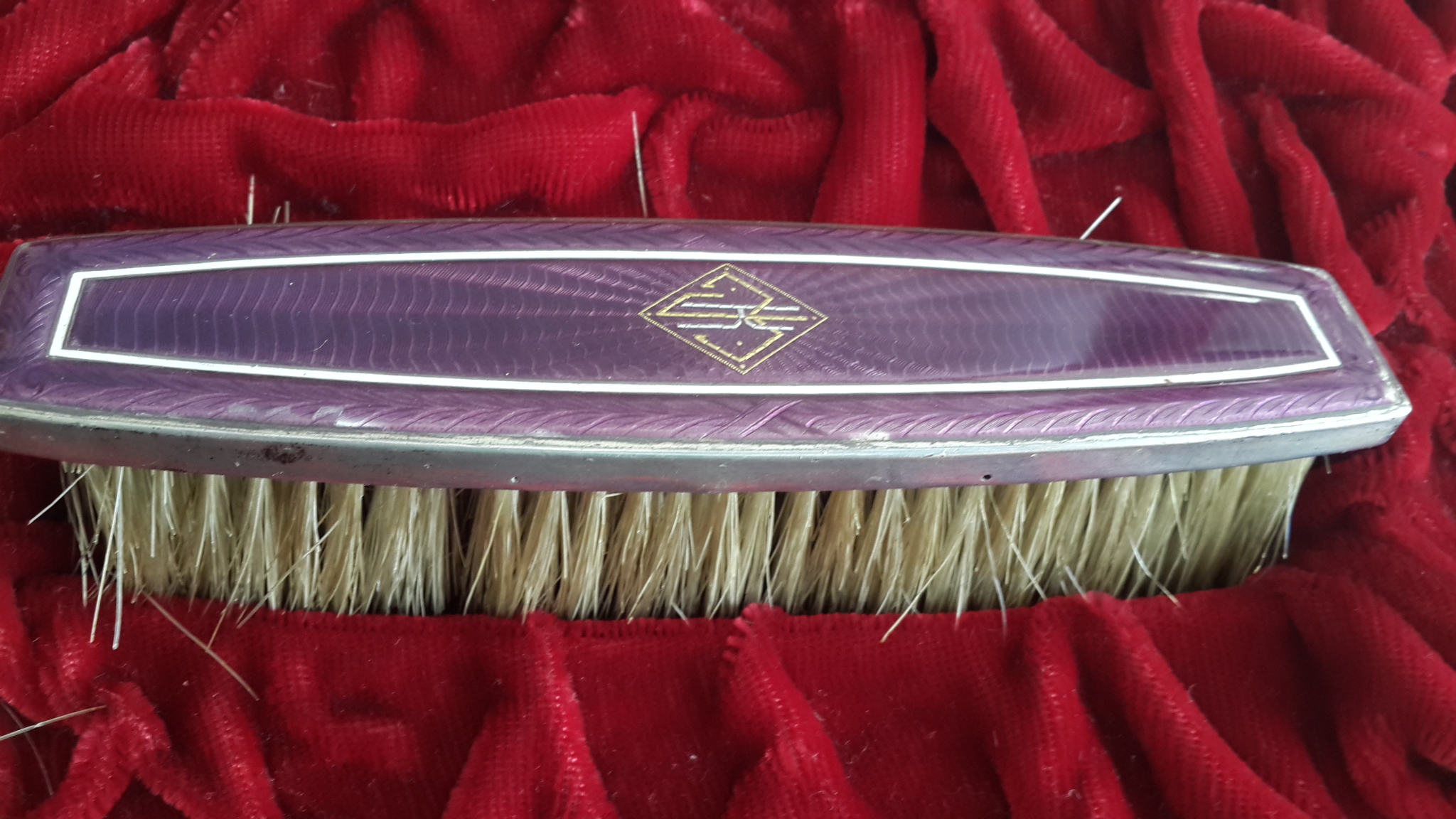 Re: Old Antique Shoehorn and Dresser Brush Set in Velvet box