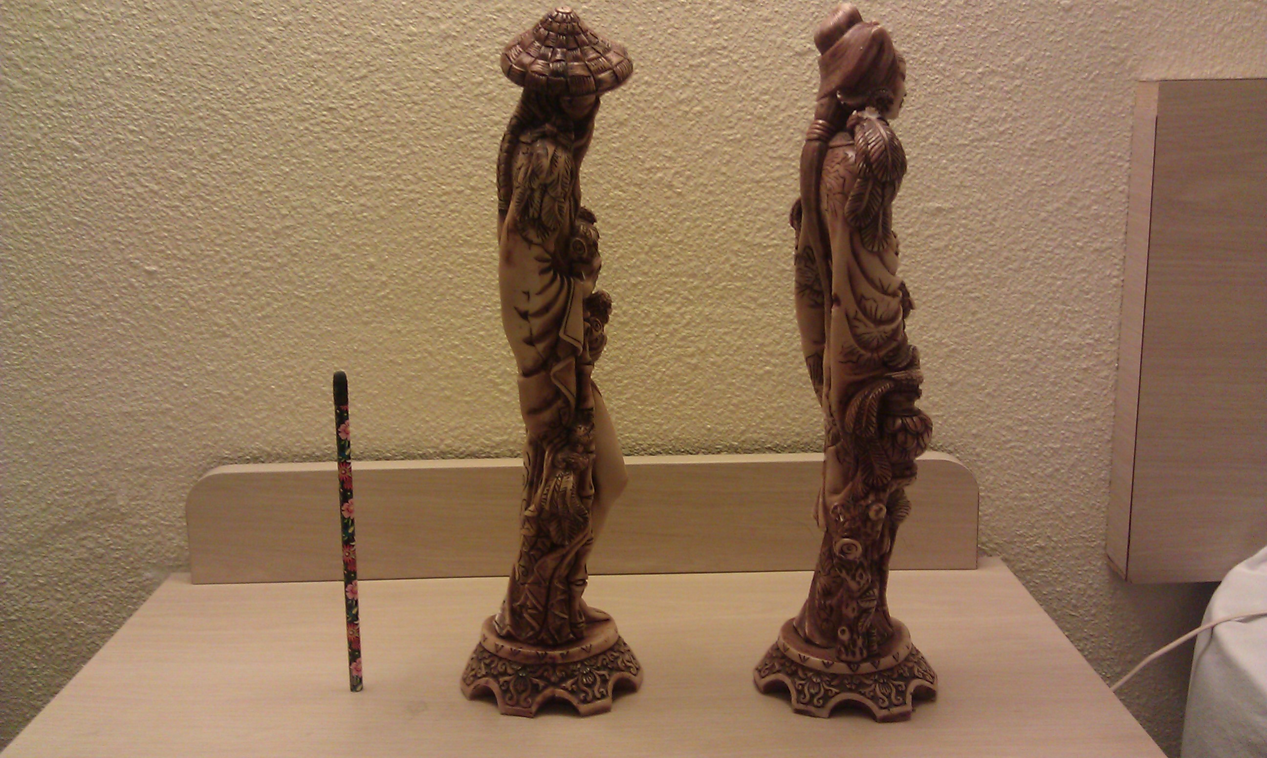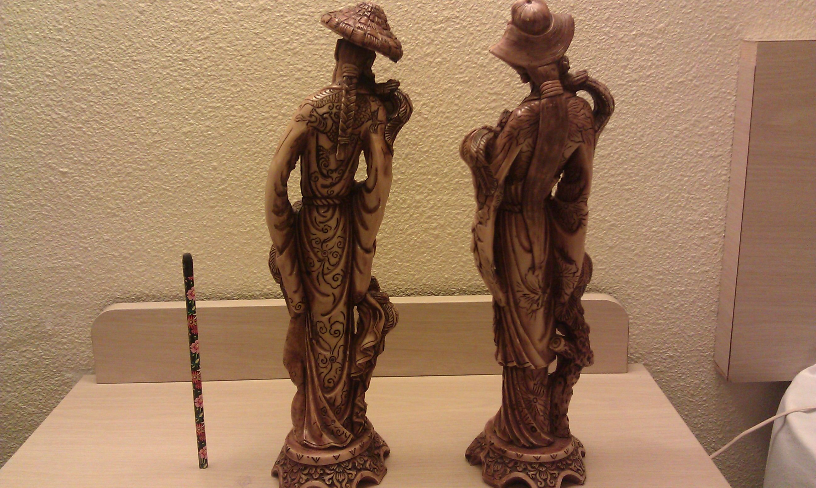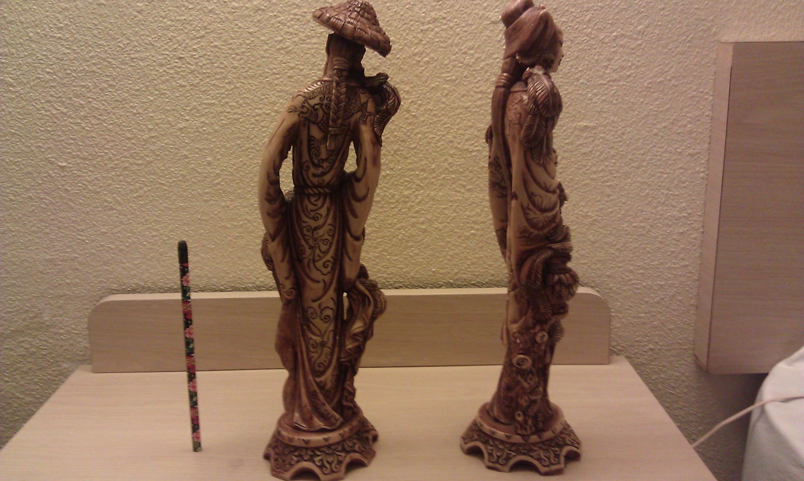 Recieved these wonderful statues as a gift while on an indian reservation in Montana. Statues seem to be pretty old and still in good condition aside from possibly a couple of chips on the female. I have photographed them beside a pencil for scale. They have a nice weight to them and look to possibly be of some value. Because of the birdgs and other items they hold I feel they may symbolize something of the culture or whatever the artist was trying to portray.