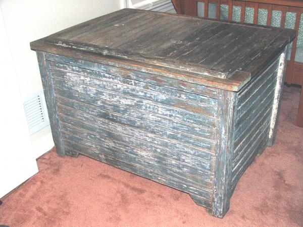 Description This is an ice box we bought about 15 years ago for ~$250. The inside is zinc-lined. It has sawdust insulation. The piece is solid and weighs over 100 pounds! It has its original blue milk paint that is faded and worn. It is unrestored. Any opinions as to true age and value is welcomed! Thanks!