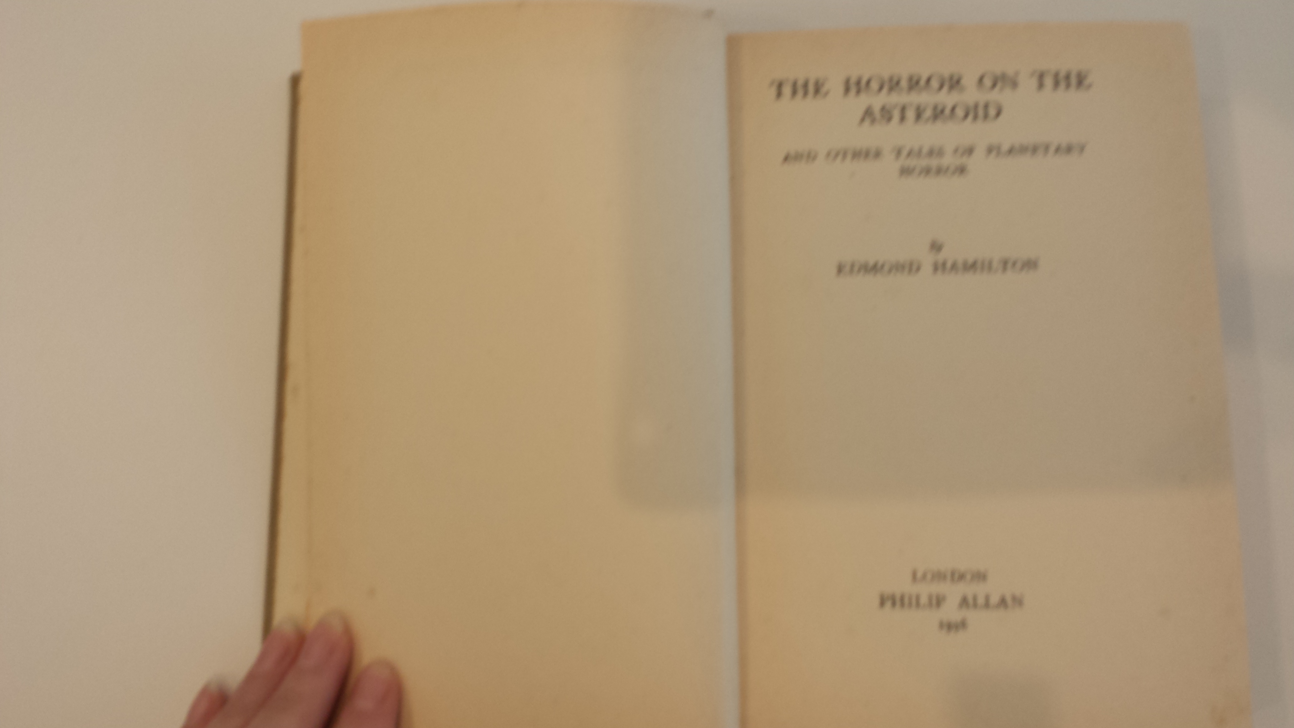 The horror on the asteroid and other tales of planetary by edmond hamilton london philip allan 1936