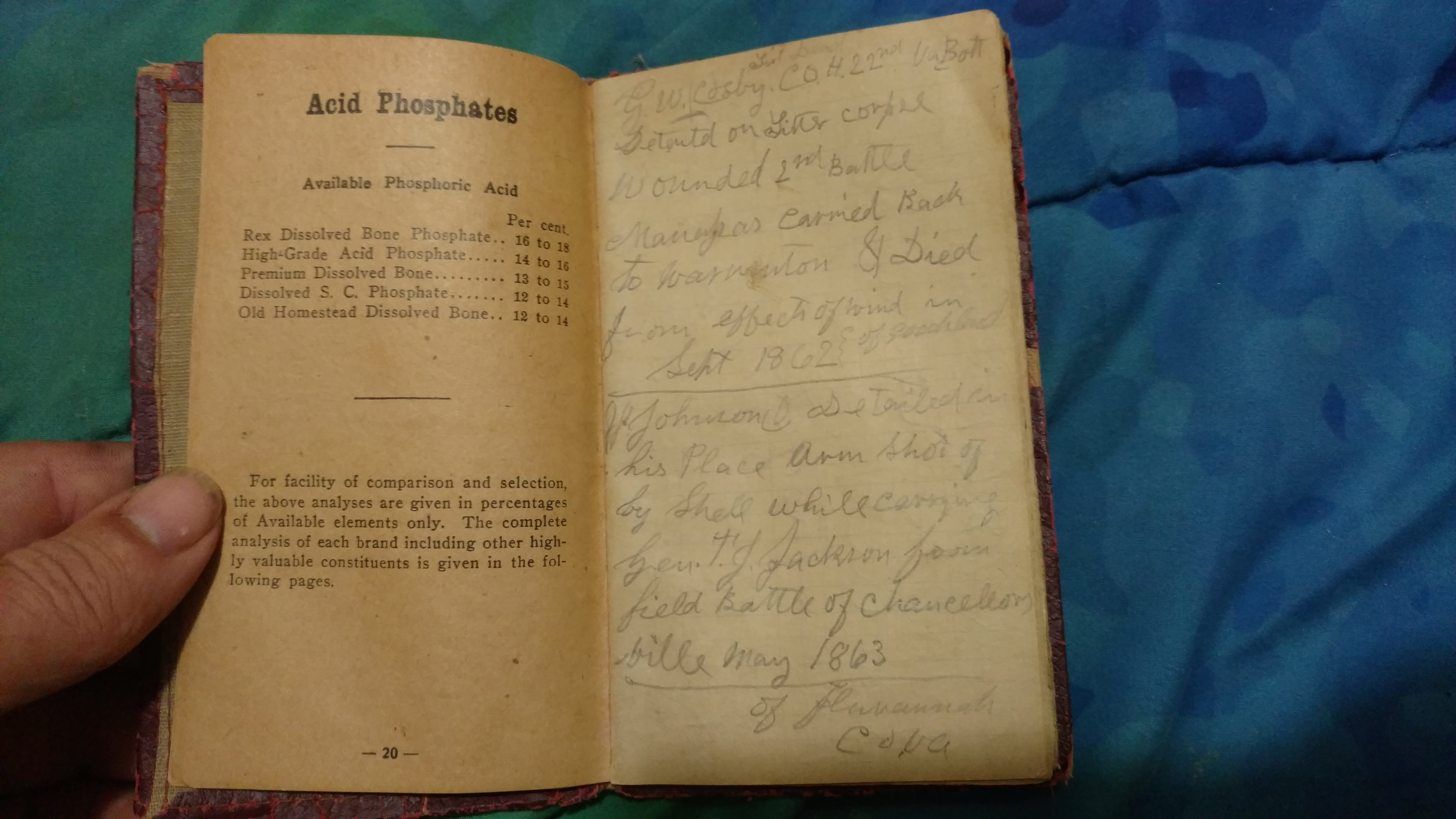 I found an old journal that has a 1911 & a 1912 calendar in it. It also has hand written names and how they were injured or killed in the civil war. Just trying to find out more about it.