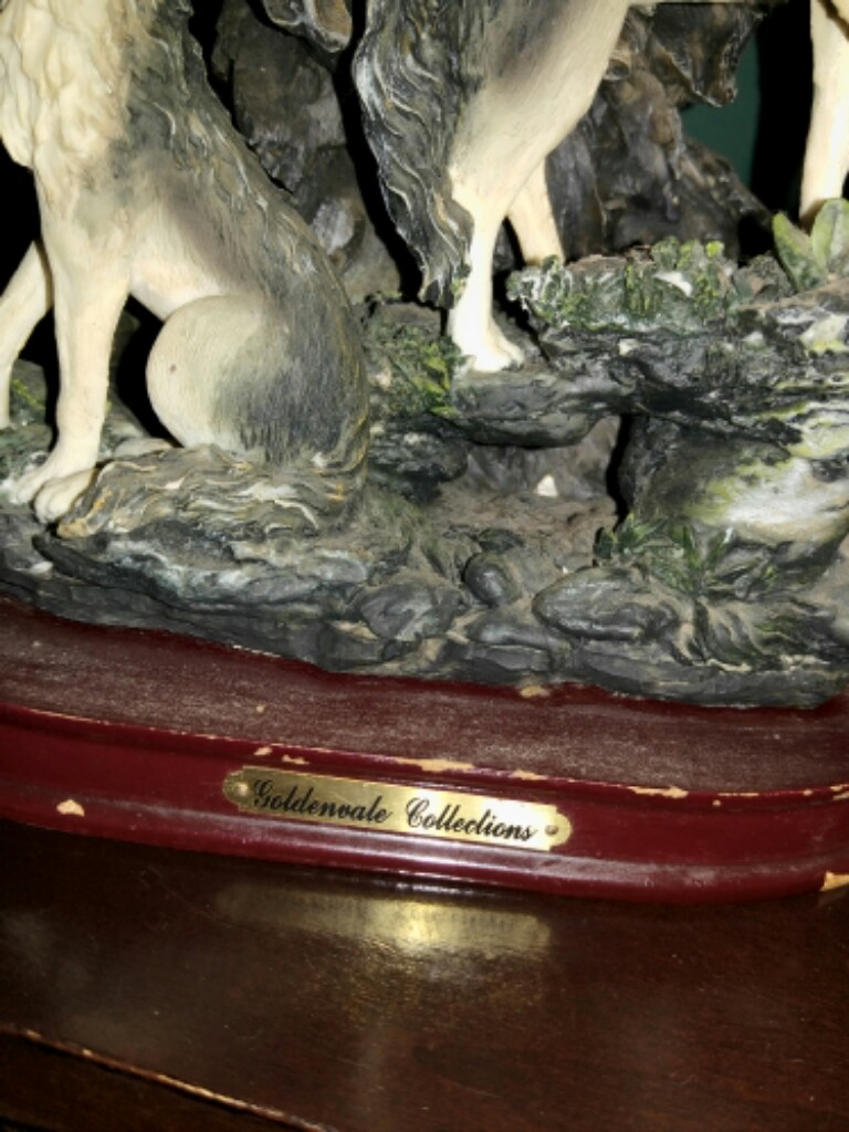12 inches by 8 inches are the boxes and wolf is maybe 16 inches high