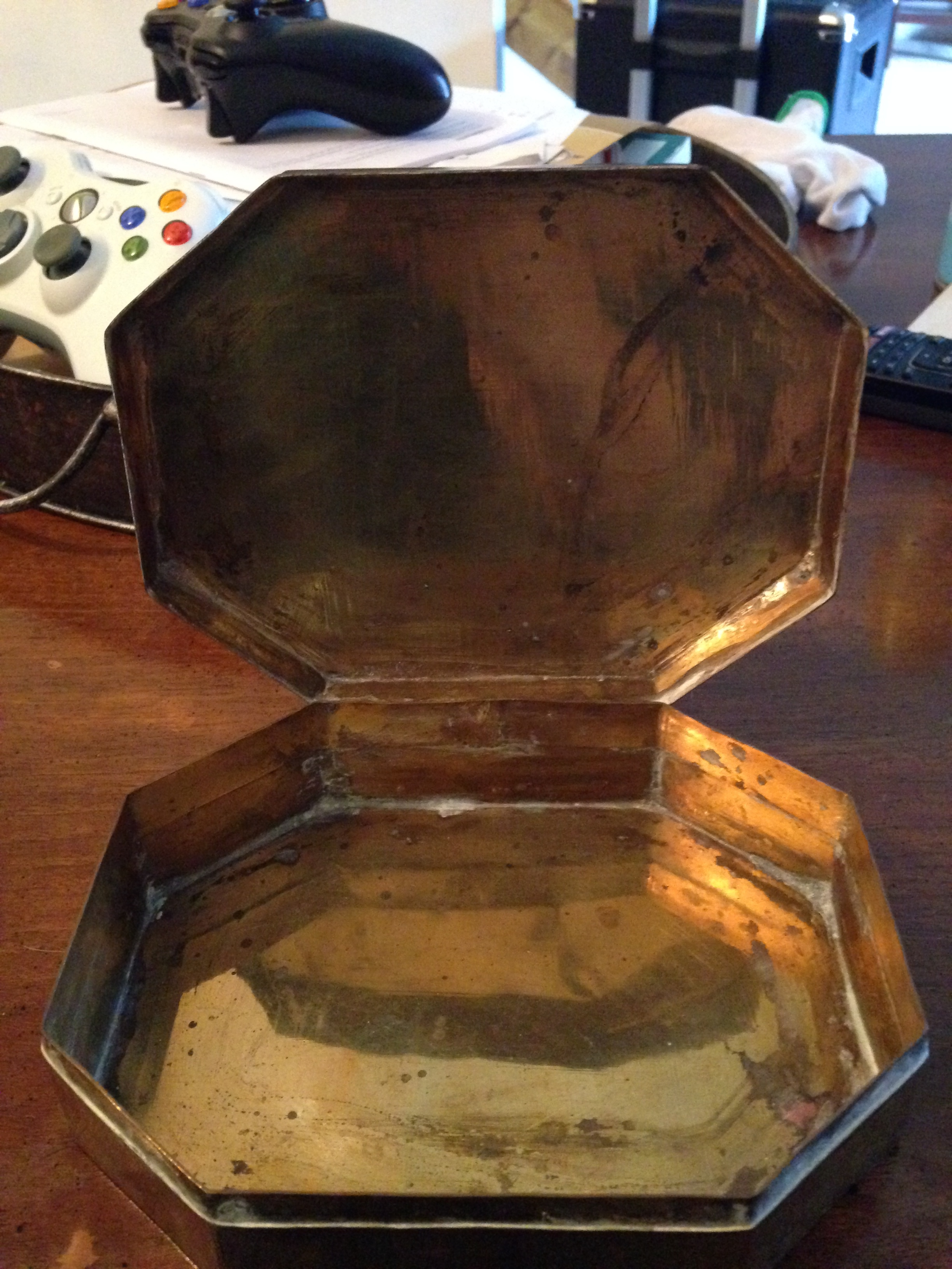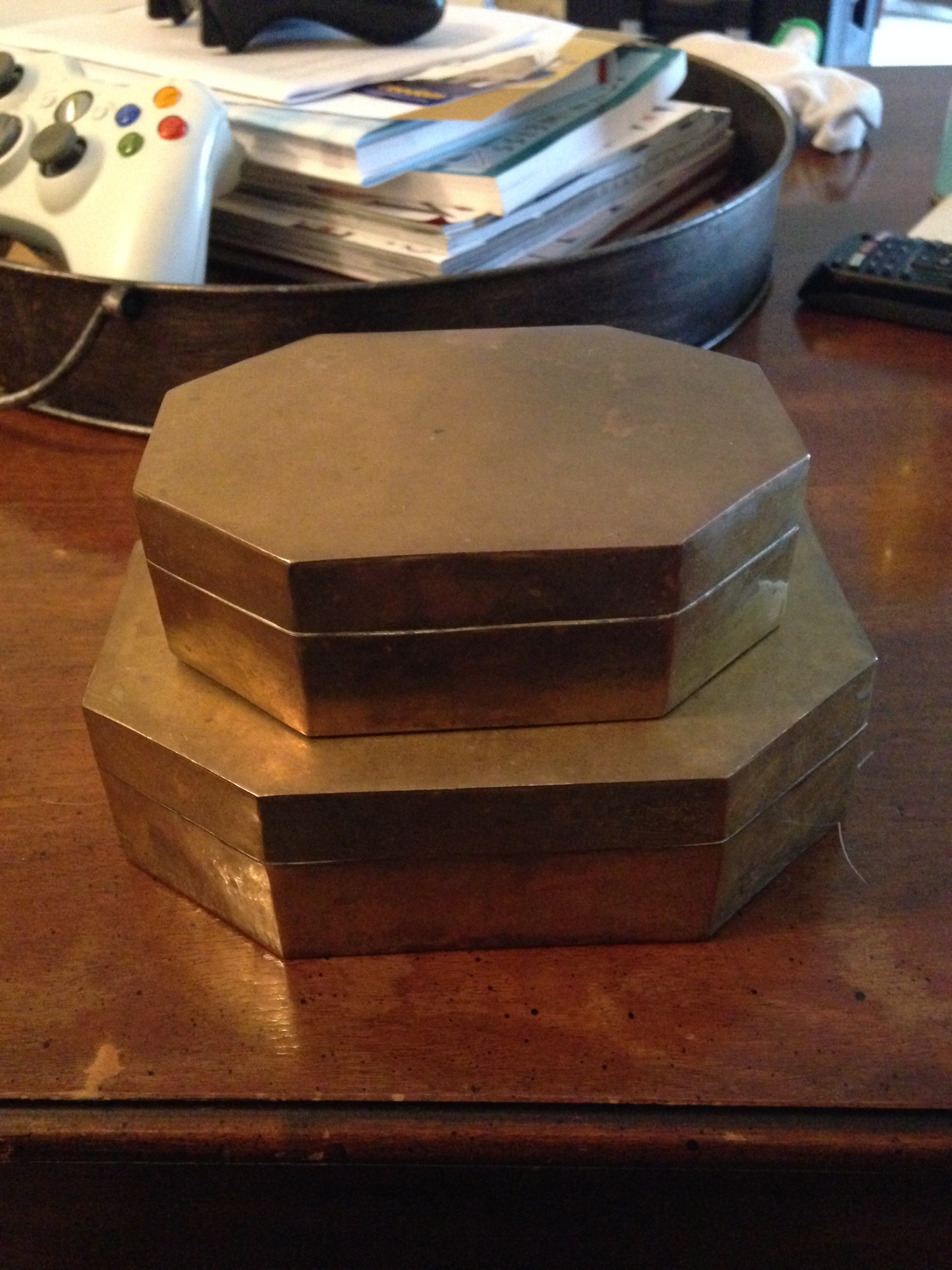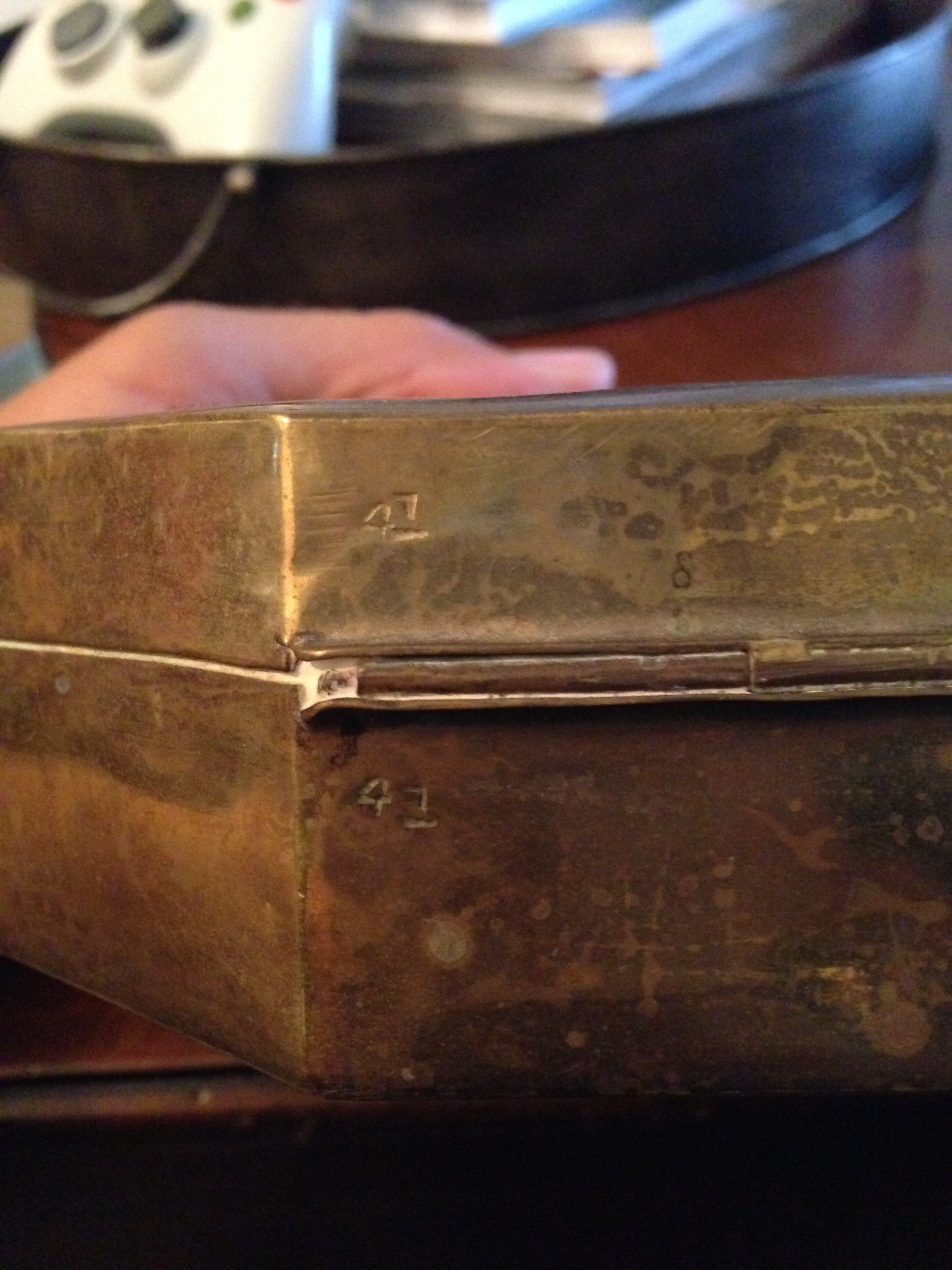 These are two old brass boxes that seem to be from before the industrial revolution. Each one has two stamps on the back that appear to be stamped very crudely and in different locations. The back of the bigger one has a 75 on the back of it and the other has 41. There appears to be quite a bit of age to each of one. I also did not notice any tool marks on either of the pieces. Are they brass with silver inlay? Any information would be great. Plan to add them to my collection just want to know as much as I can.