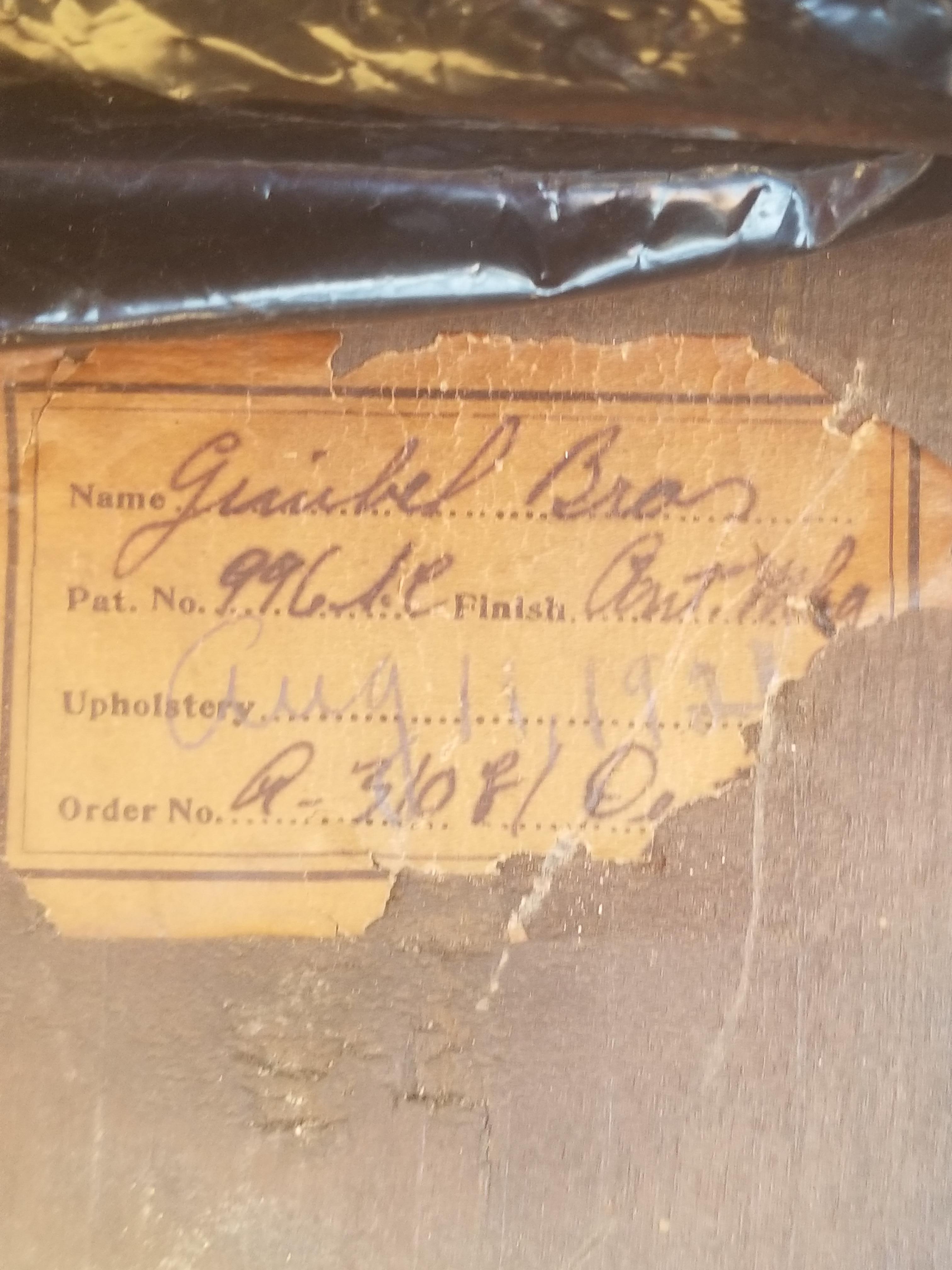Got an old chair day from An state sale has a patent number on it but it also has a sticker from the Simonds company furniture Syracuse New York .Chair is in good shape it says 1921 on the chair botton pictures included