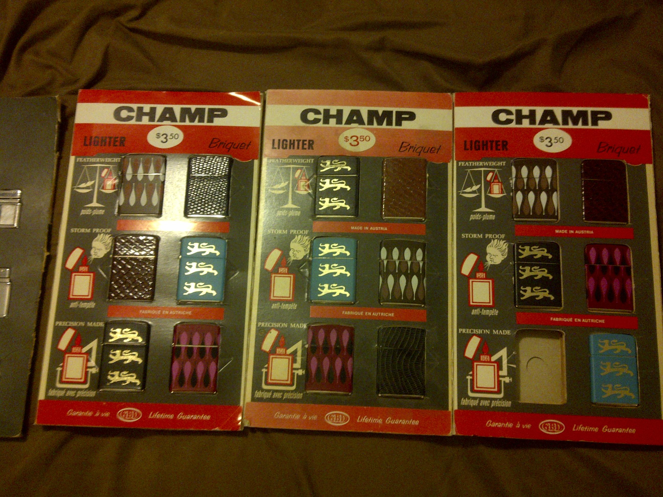Trying to get some insight on these champ lighters. They are in near mint condition and also have the original packaging. Does anyone know what the value of these could be worth they were also made in Austria
