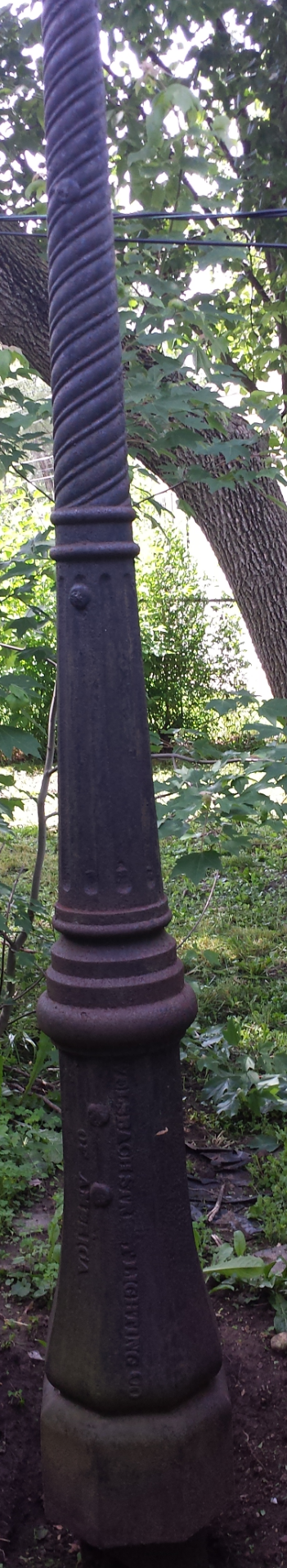 An antique street lamp from the streets of chicago. Looks like it was converted to electric.