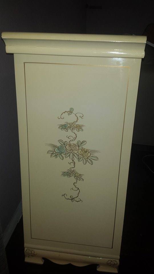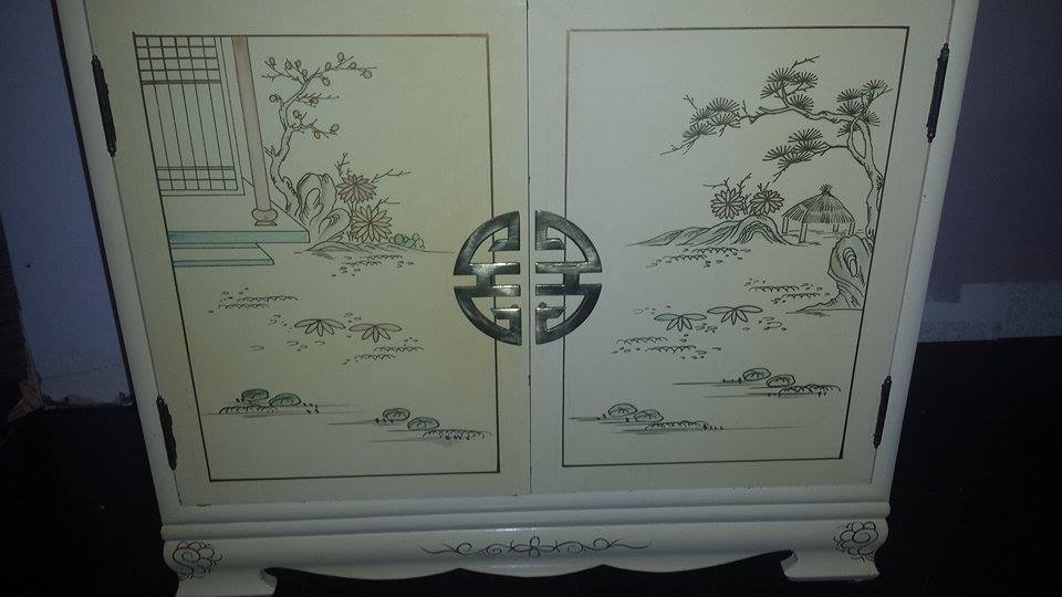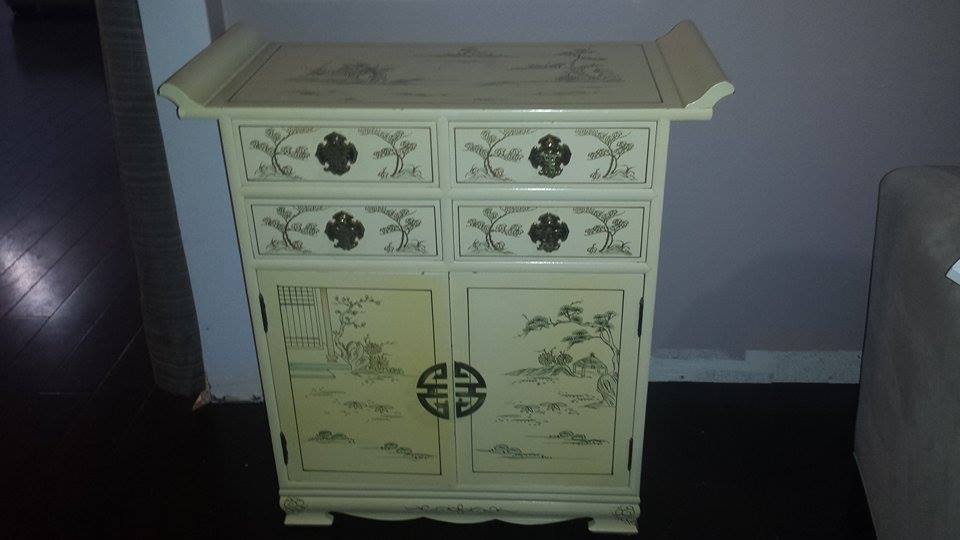 This is a cabinet (possibly prayer cabinet/ altar-type ming-style cabinet) that was "Made in Taiwan Republic of China." It appears it was once white but has turned yellow over time. Also, there are what appears to be hand-painted designs all over the piece (besides the back.) I am asking for any information on this piece if known, please, including date range. Thank you!