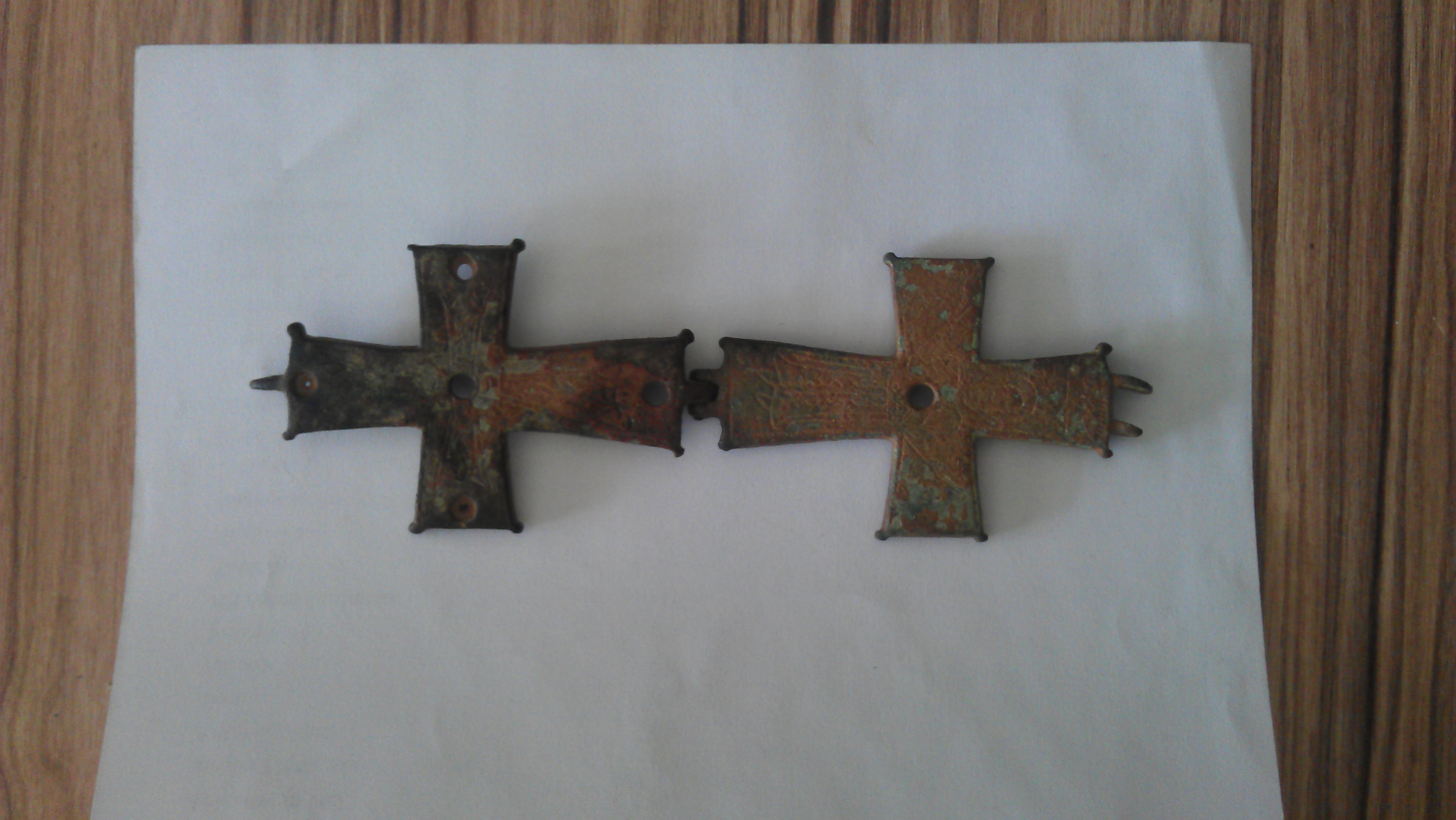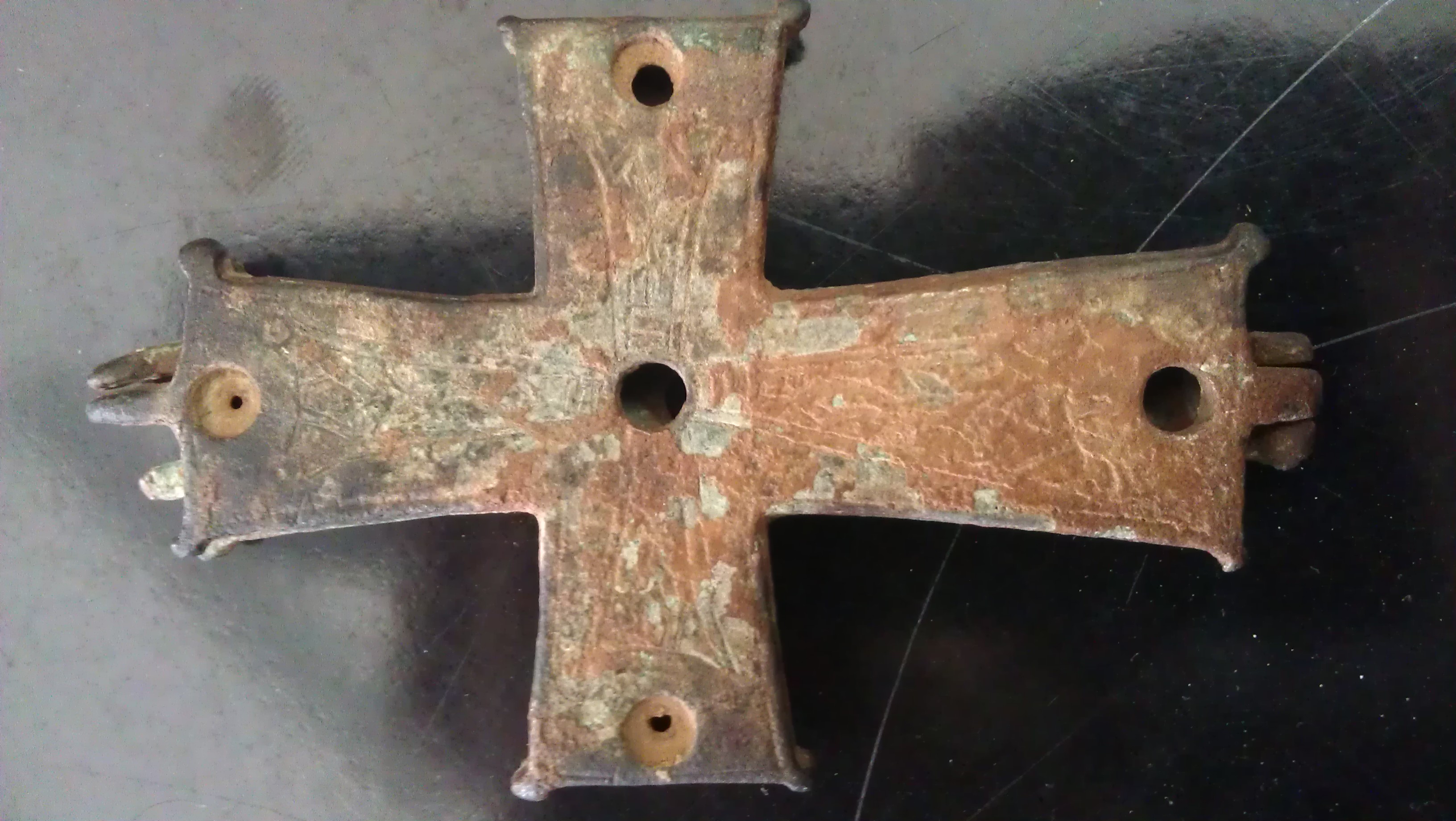 Very old christian cross, found in soil in Middle east. Can be opened, hollow inside.