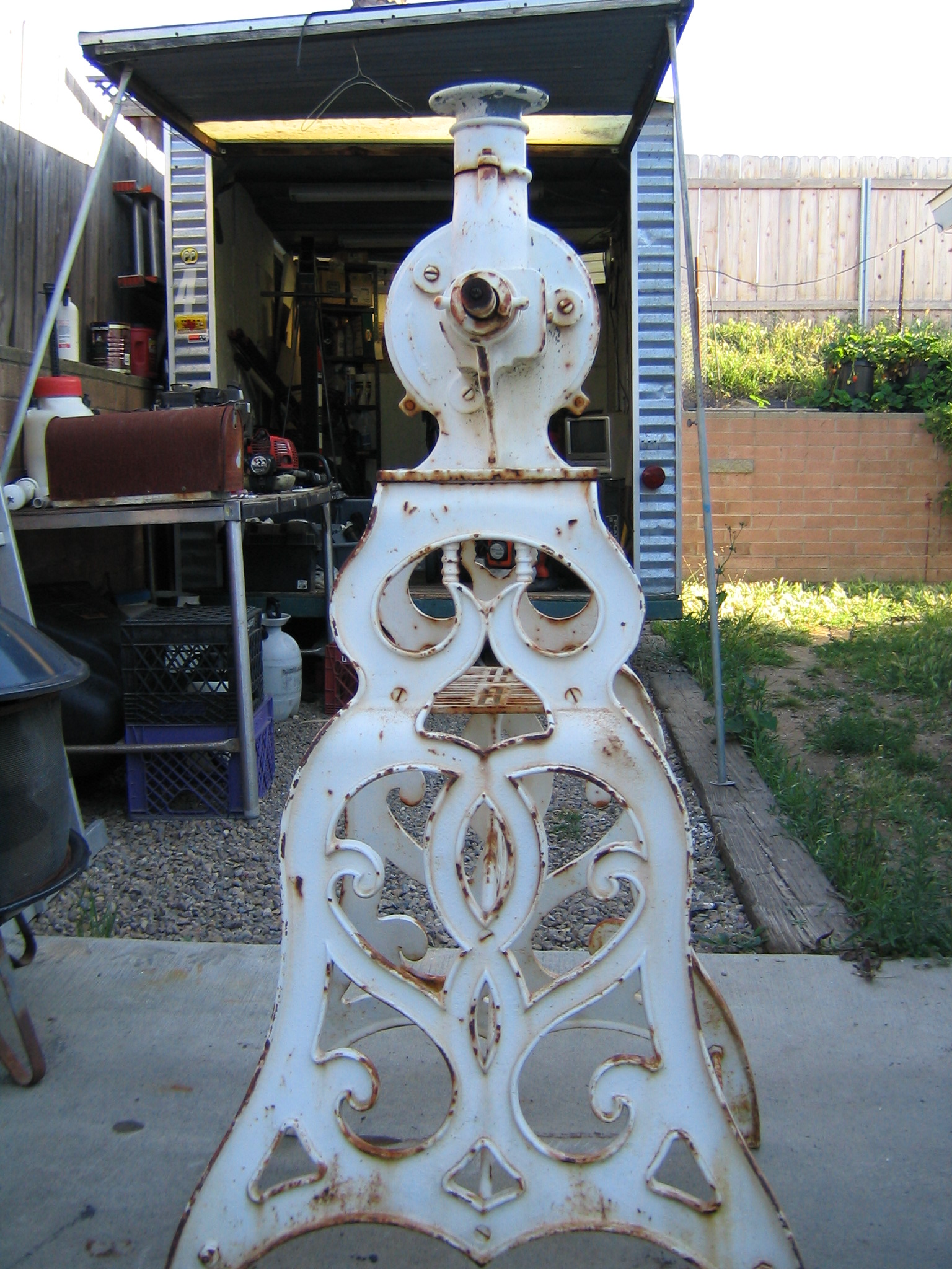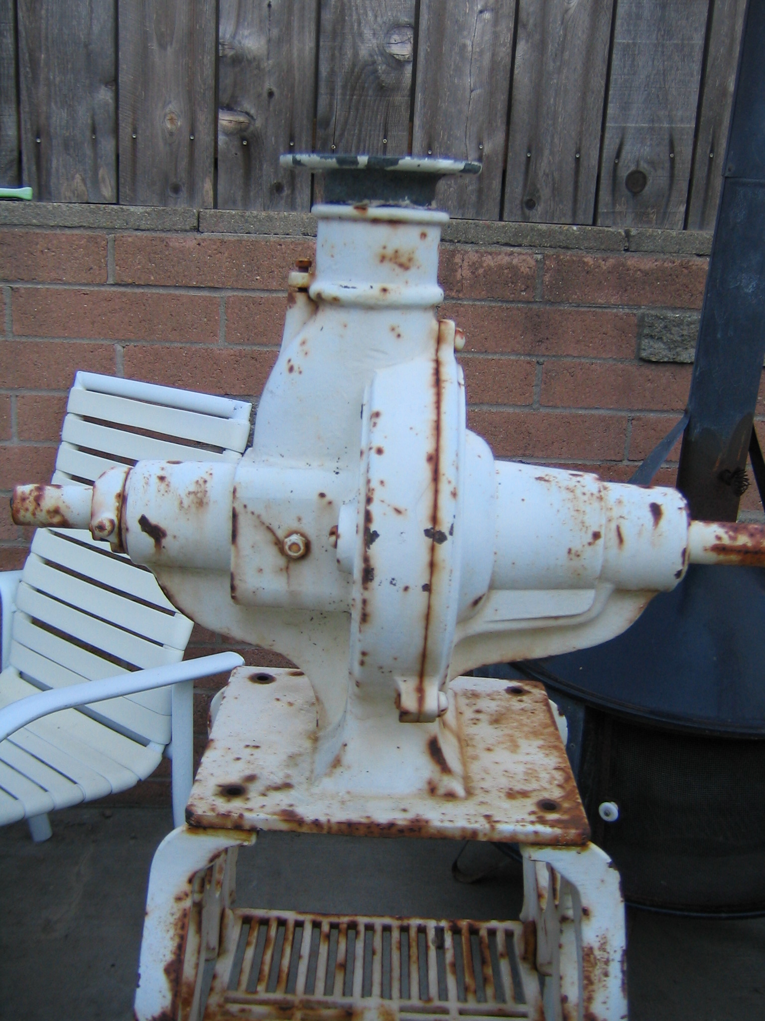 I am hoping to find out what this large coffee grinder is worth. It stands about four feet tall and is cast iron I think. It has a patent date of Dec 27, 87. It has surface rust, but it is very solid. It is missing the wheel to turn it and the gears seem frozen. Anything you can tell me about this would be greatly appreciated. THANKS!