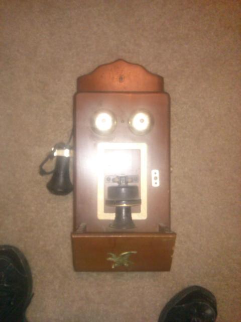 I have this old antique crank wall phone that I haven't been able to find out much about. All it says on the back is "8 Transistor" and I know that it is made in Japan. I inherited this from my grand mother and have been curious about it. There is an emblem of what appears to be an eagel or hawk with 3 arrows in it's claws. If anybody knows anything about this please share with me.