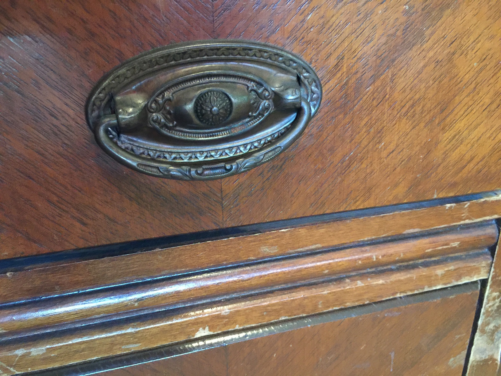 The style reached it's peak of popularity during the mid 1920's. Furniture of this type were popular decorator items, generally produced in mahogany they were also made using in walnut, maple, and cherry. Desks like yours in need of refinishing or restoration often sell in the $150.00-$200.00 range.