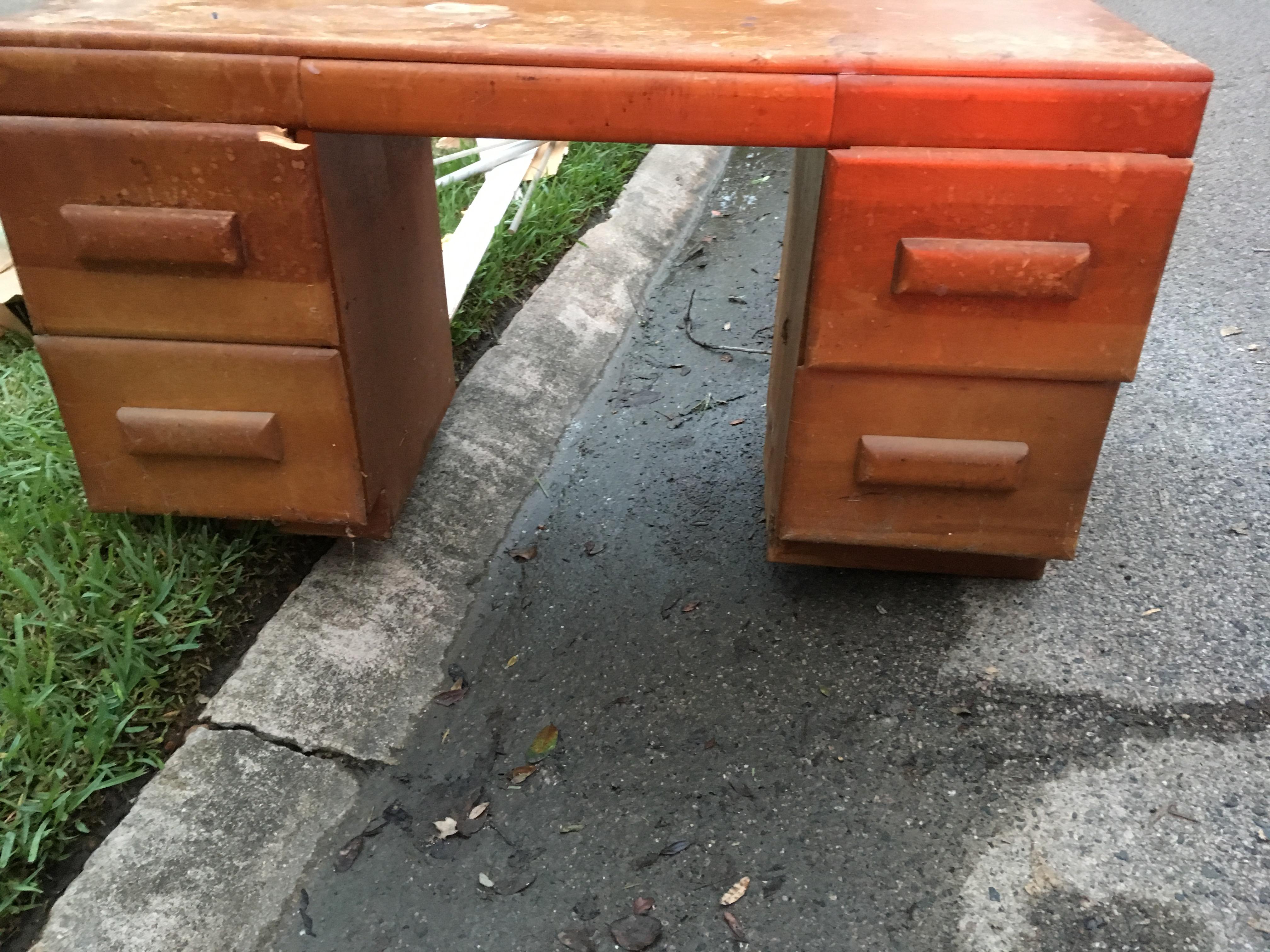 1950s desk with two drawers each side and one center.