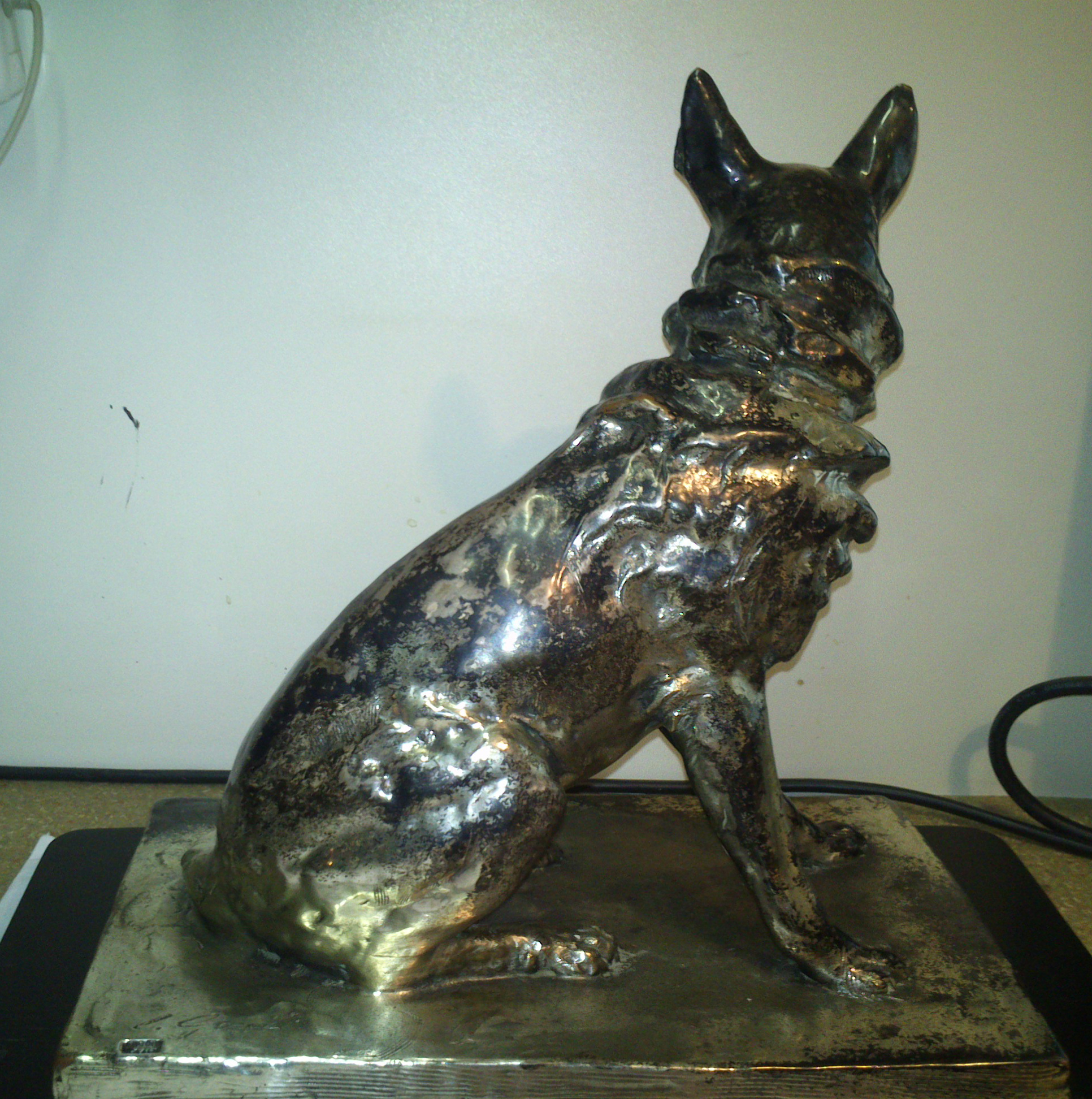 Hello, my name is Aleš and im researching this statue of a dog that i was given from my uncle. I think its made from silvered copper. There is also signed (L.Gerih-not shure) and stamped. Stamp is almost unrecignizable, all i can read is upper line- fabrique.. Statue dimmensions are: lenght: 27cm, width: 17cm, height: 27cm. So maybe if you can give me some information it would be a great help.