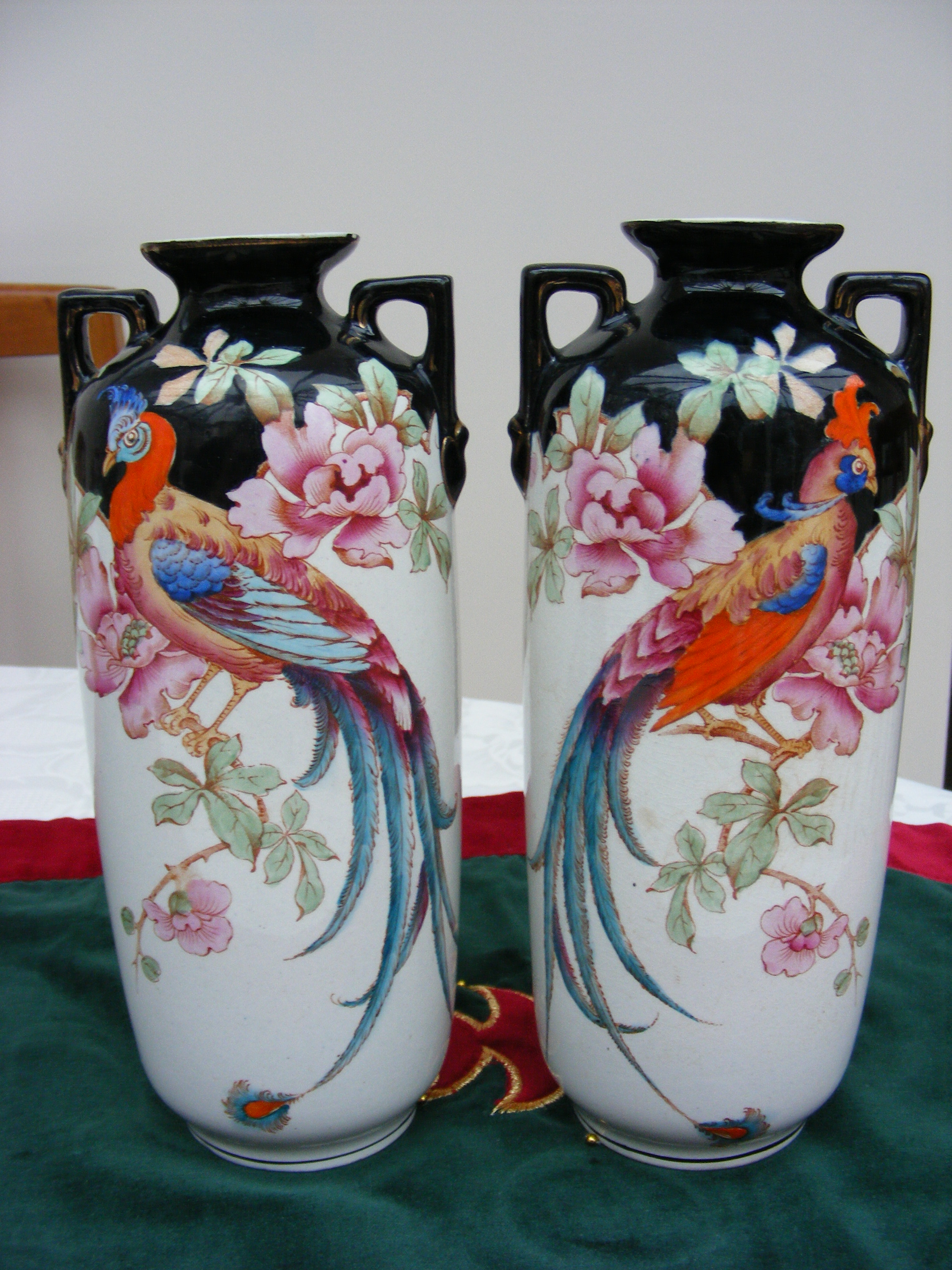 Pair of English Bone China Vases featuring Birds.