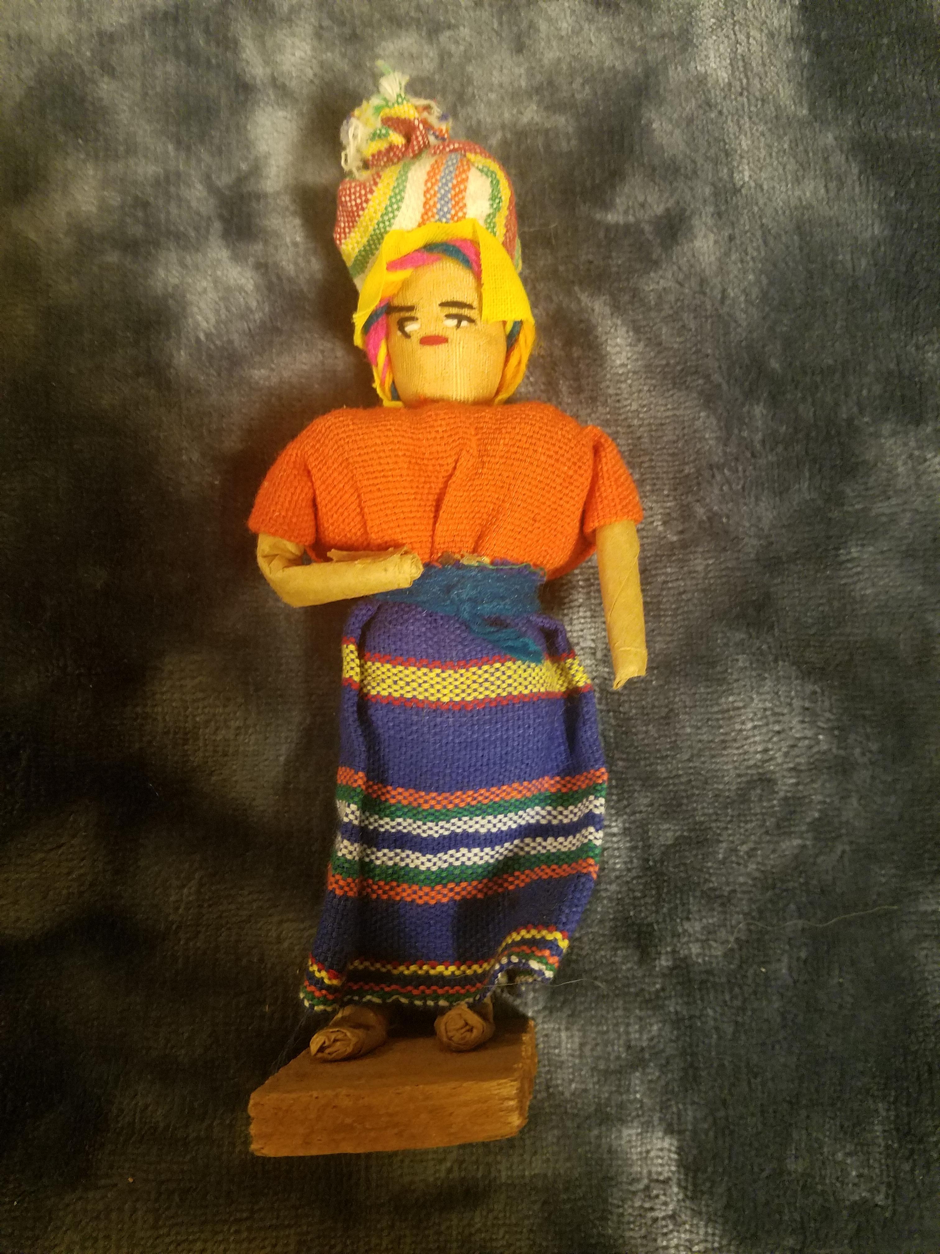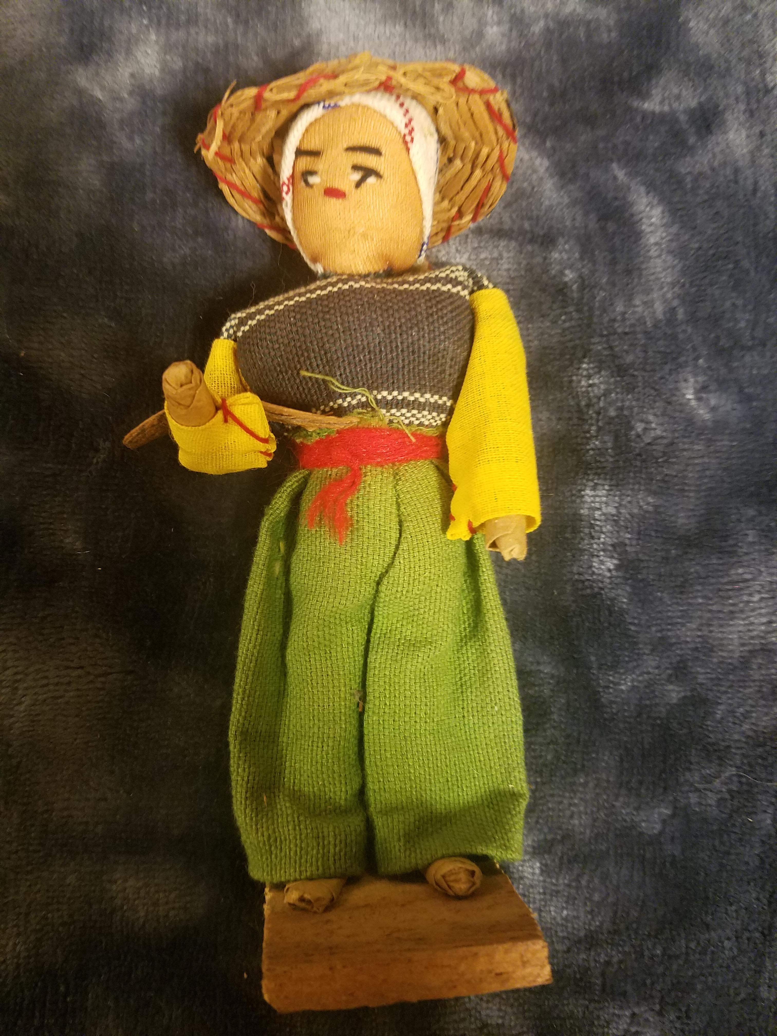 I purchased some small dolls from a local thrift store and don't know their value if any. They are all 6-8 inches and handmade. One doll is from Hungary, is made of cloth and clothes are hand embroidered. The majority is made from a brown paper and have guatemala written on the wood base. The male doll is from Israel and has a sticker on the bottom handmade by Sabra. One doll is from Greece and the doll with the veil origin is unknown. Any information on these dolls would greatly be appreciated.