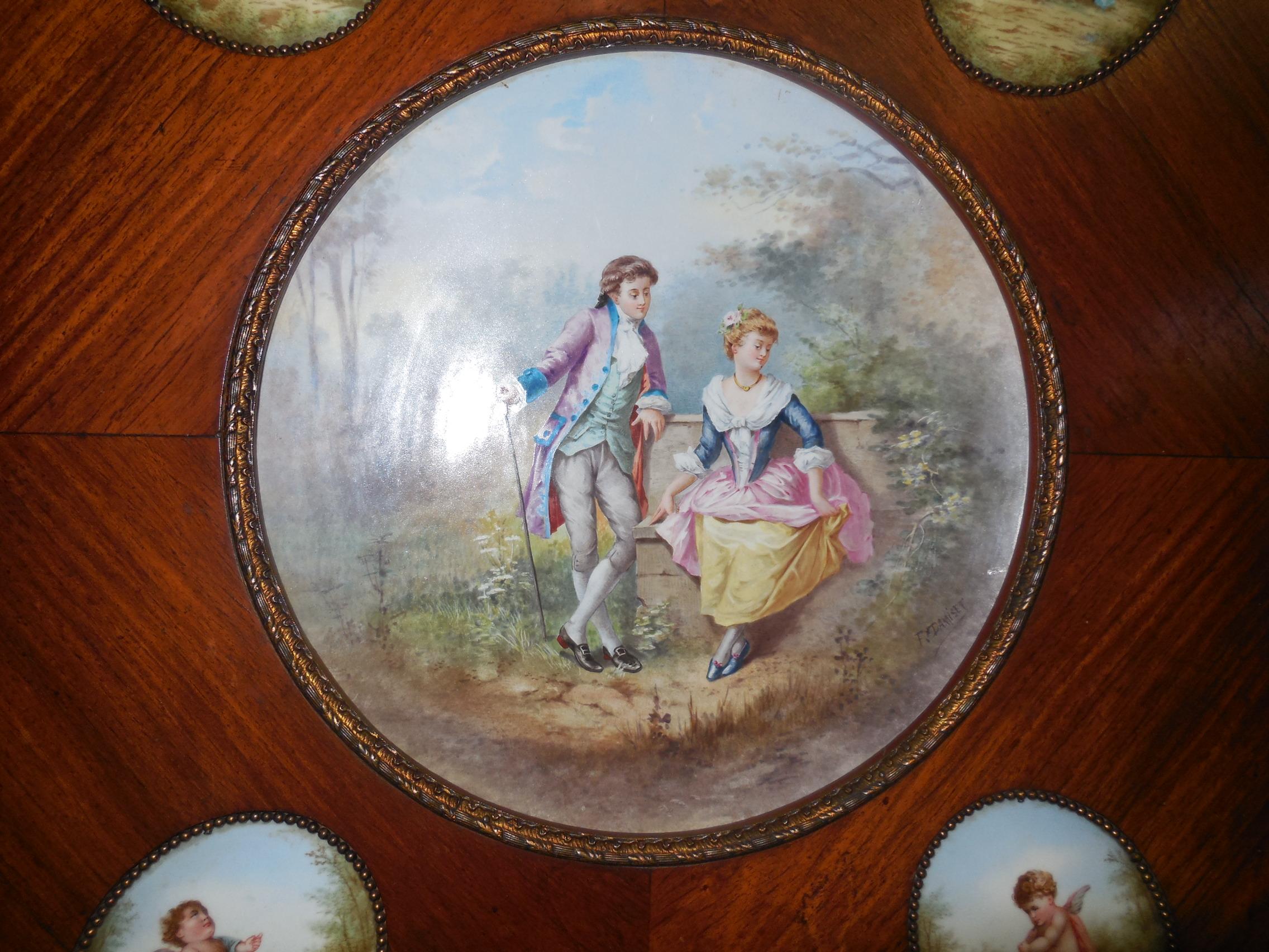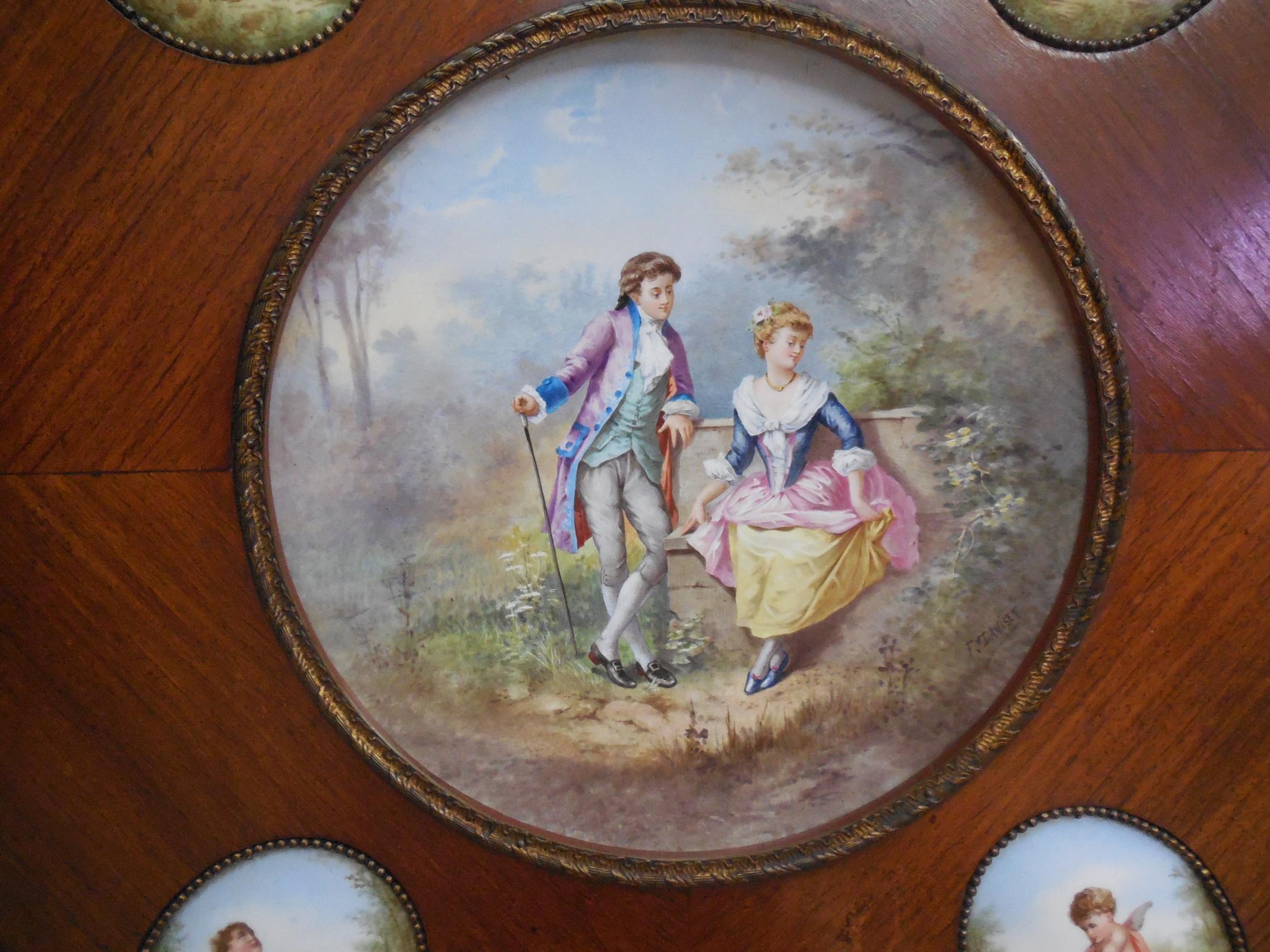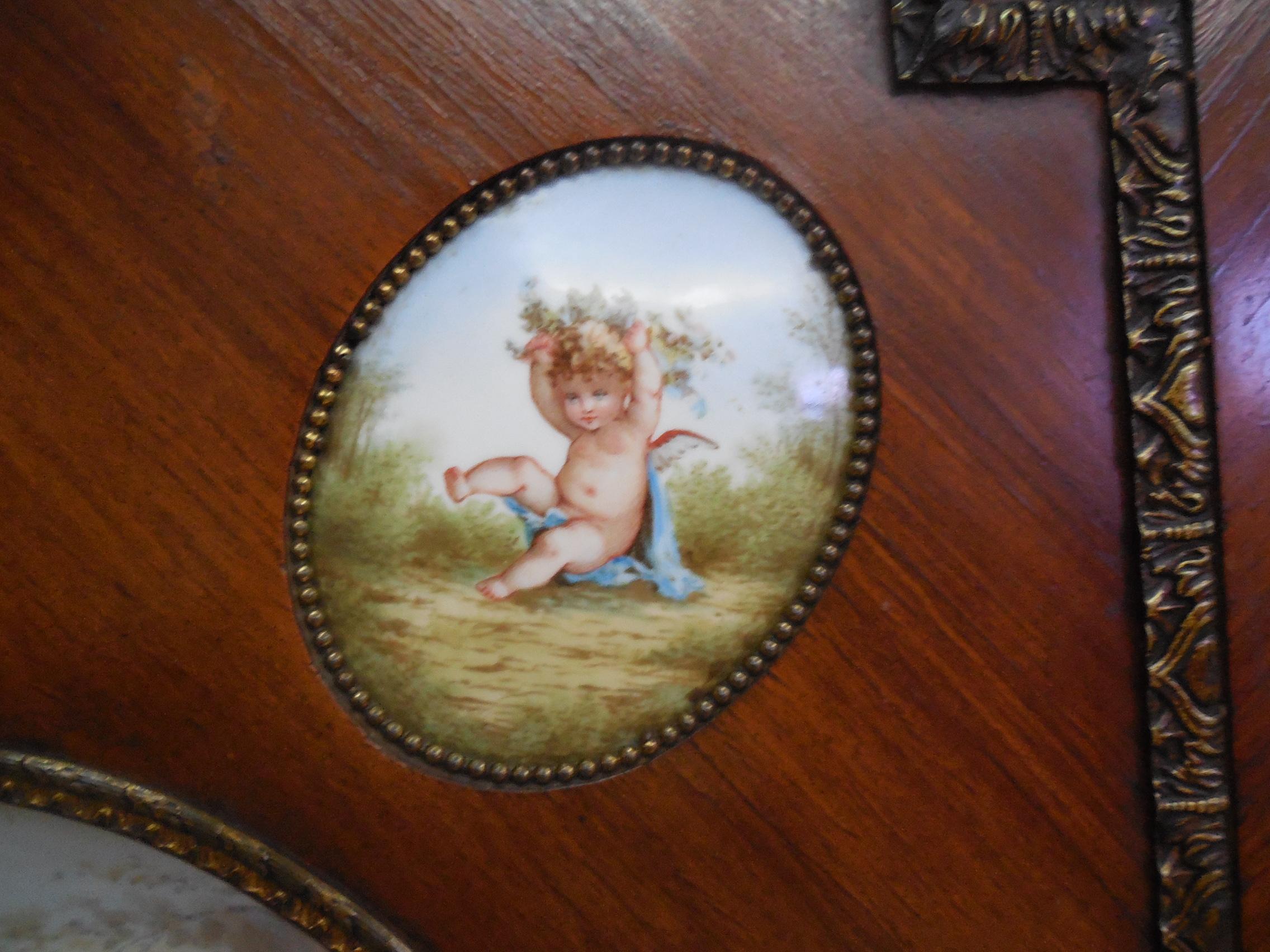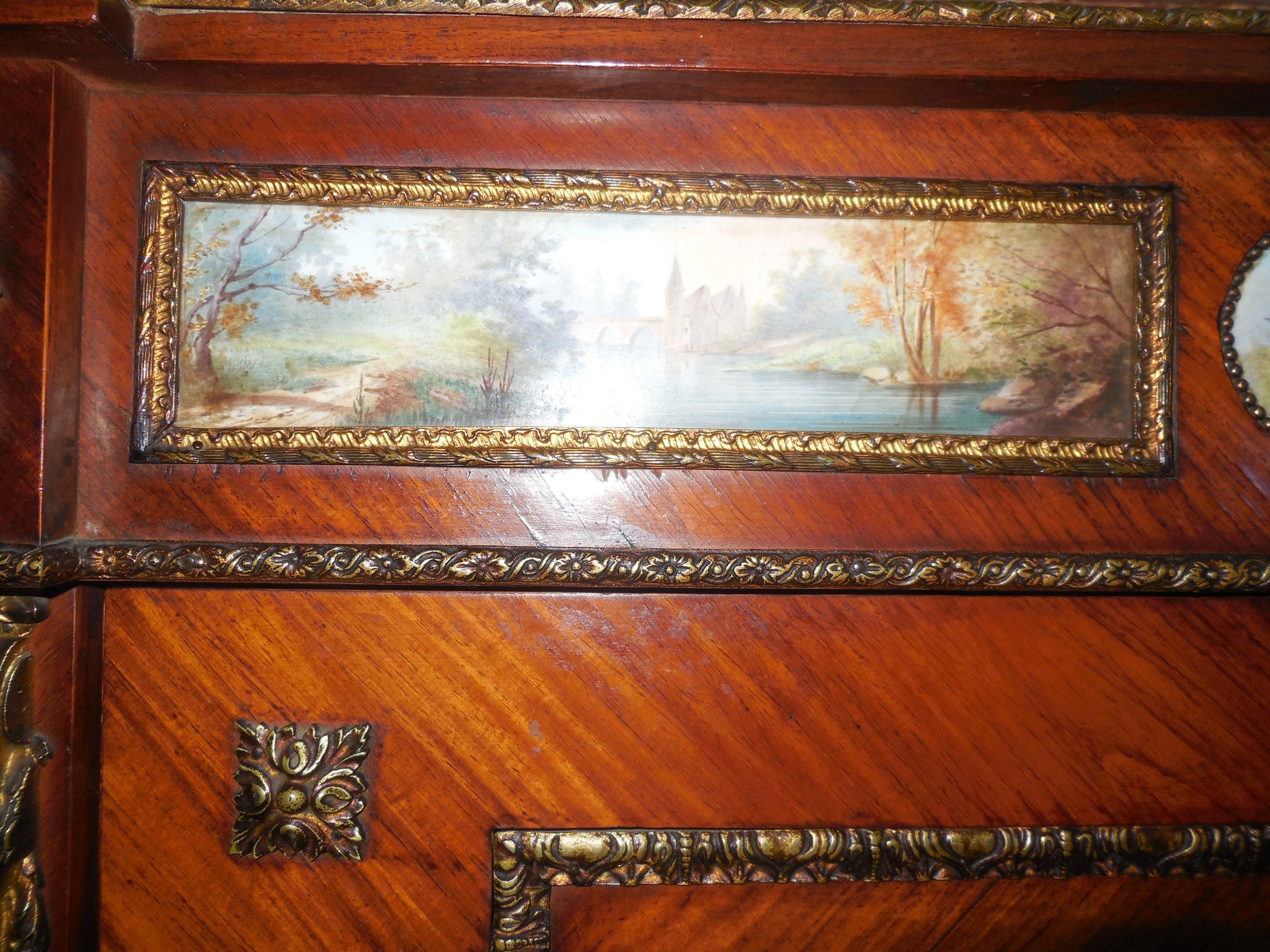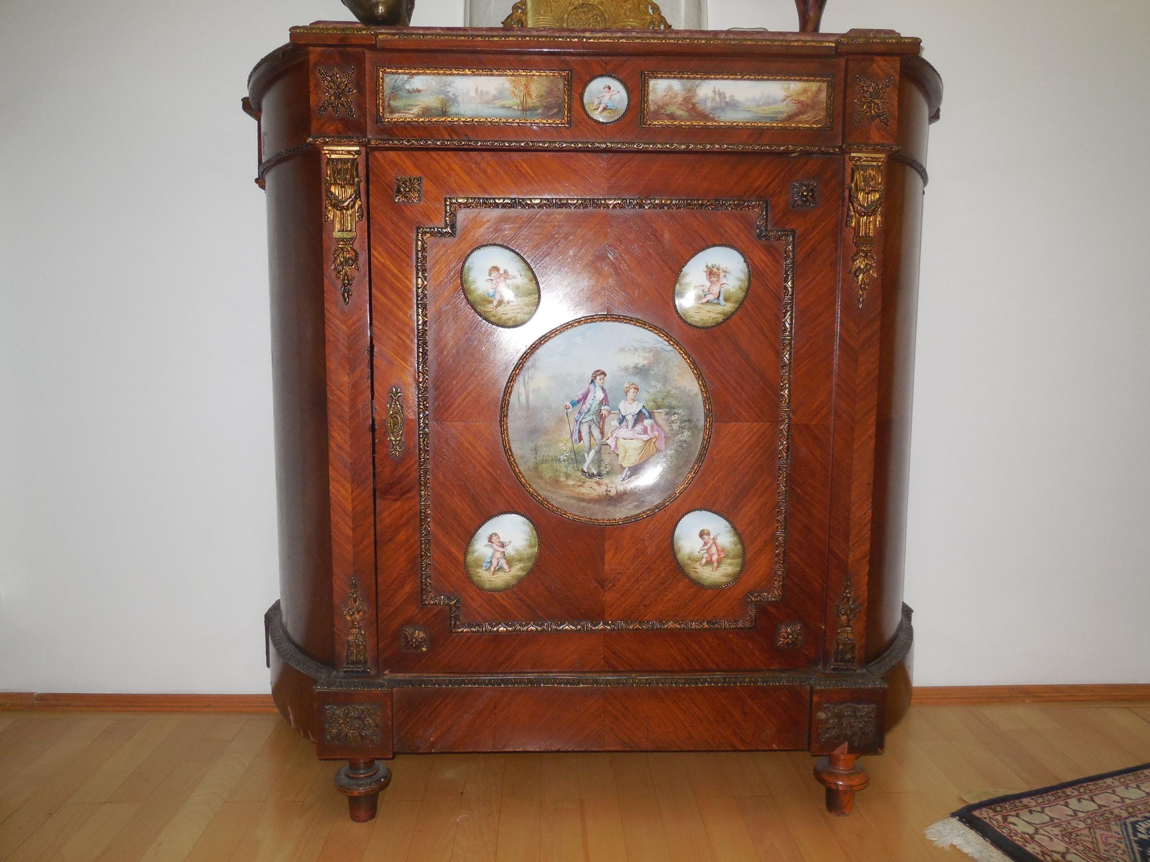 An old piece of furniture with Sevres porcelains painted
