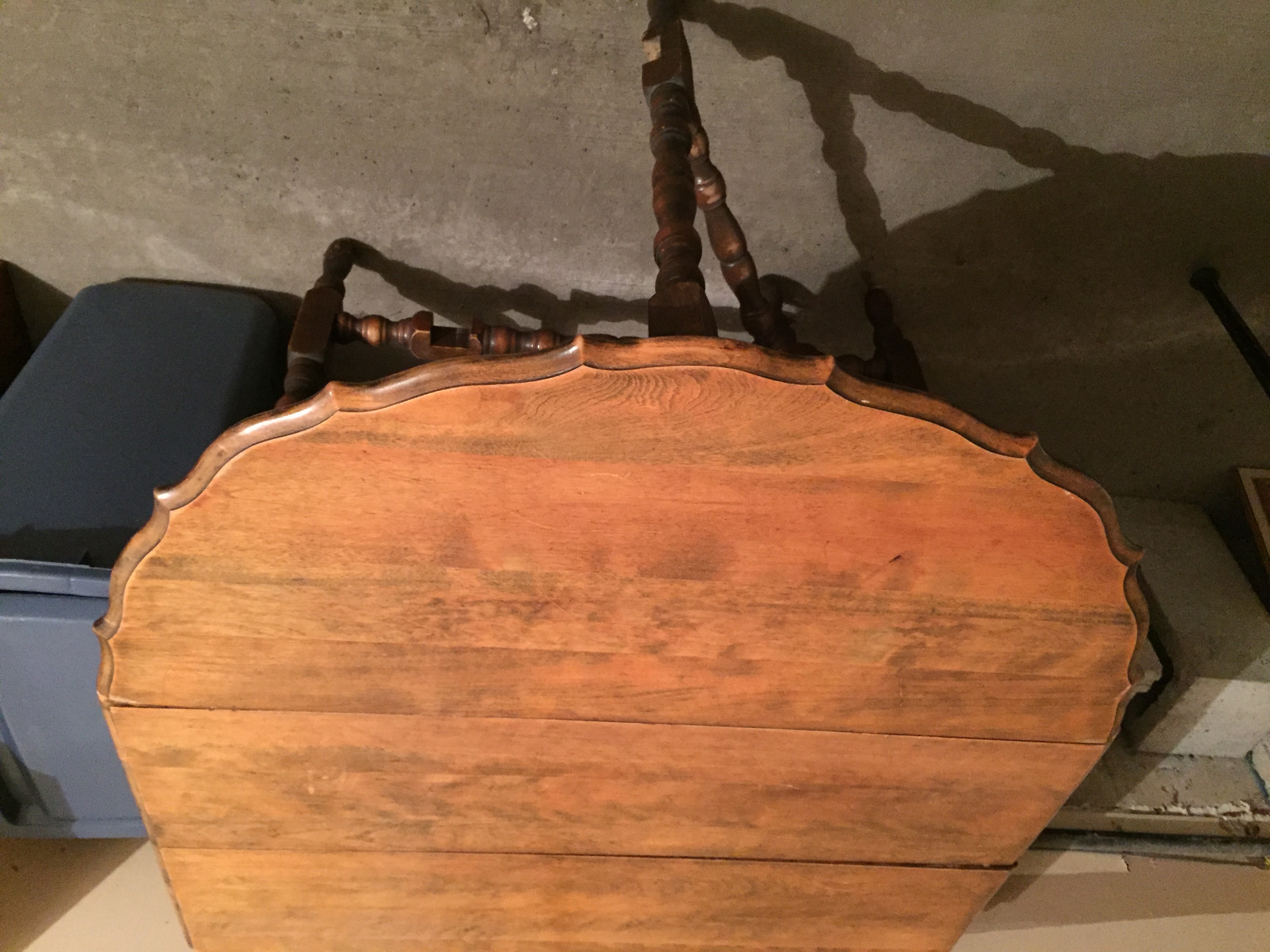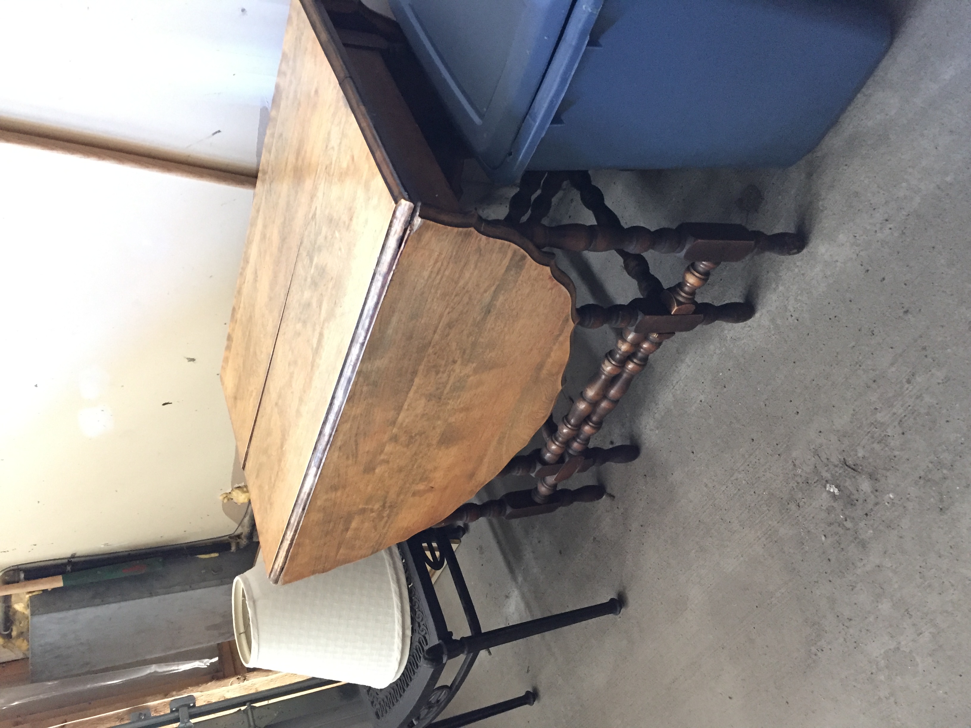 I'm looking for information about where my table came from. My mom had it for at least 50 years. It seats 6 comfortably, although I'm sure we've had eight squeezed around it! I cant find any maker's marks on it and I'm not sure what type of wood it is. There's a leaf in the middle that collapses to be stored inside.