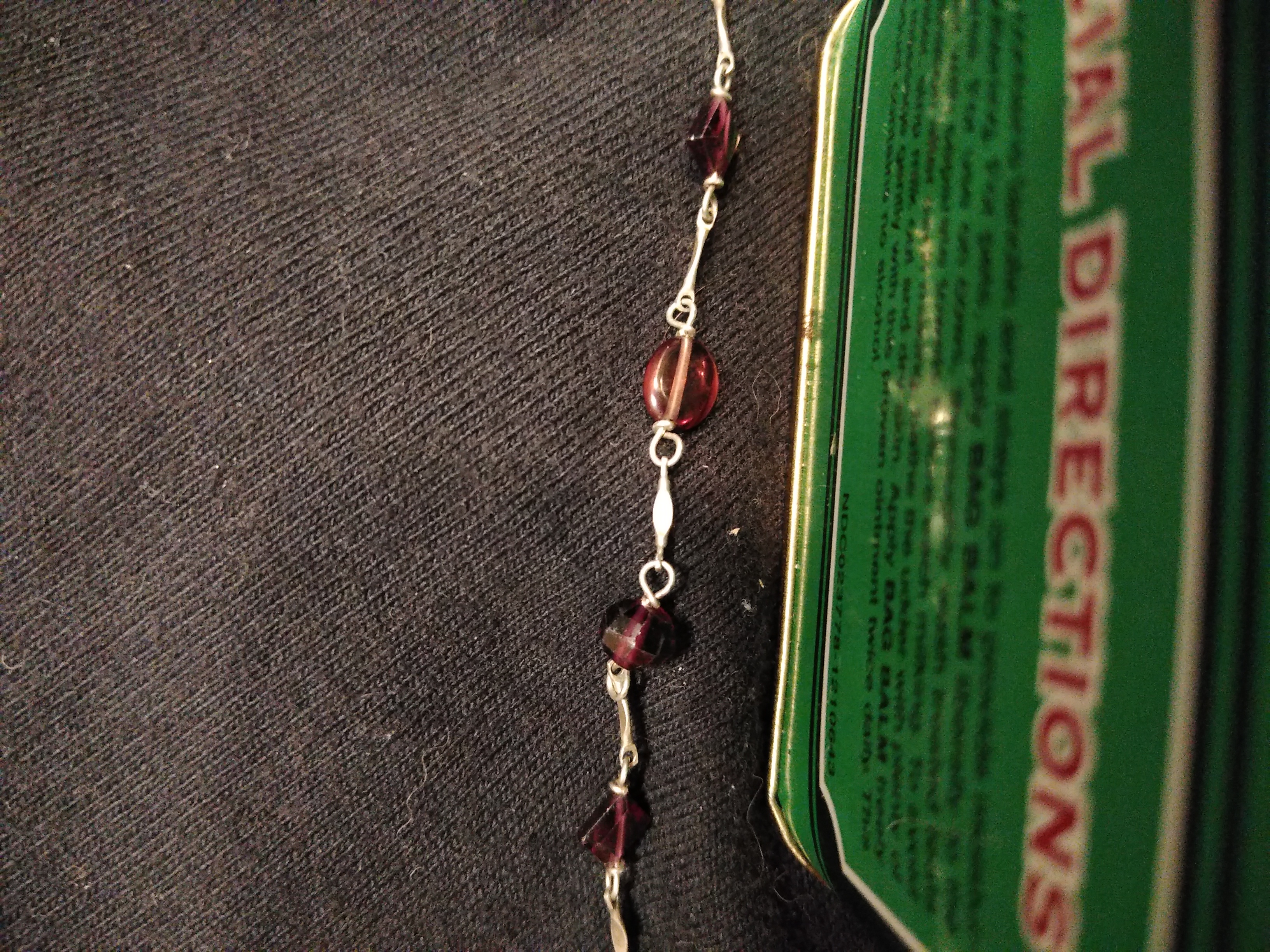 I have a chain without markings that was made completely by hand. You can see all the little strikes used to shape it if you look very very close. It is a link and bar chain I believe. On ever bar is a red gemstone I can only assume we're also shaped with inferior tools. You can also see the marks on the stones where they were cut. I am no expert but from what I can tell it is silver and several hundred years old. I would really like to know how old exactly. I just can't see anyone today putting as many hours that had to have gone into making this piece today.