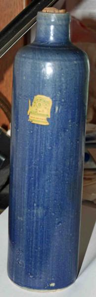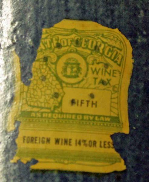 I have no information about this bottle. It sat on my parents glass display table for as long as I can remember. When they died I placed it with my depression glass display. I am curious about when this bottle was used and what type of value it has, if any. It has the State of Georgia tax sticker but no date on the sticker. On the side of the bottle looks like a 07 or C7 and 3 initials S?N. These do not look machine stamped but more like they were carved into the bottle before it was fired. The bottle is in near mint condition. No cracks, breaks or chips. Some of the blue has flaked off the side near the bottom. I don't know if this was from use or being hit.