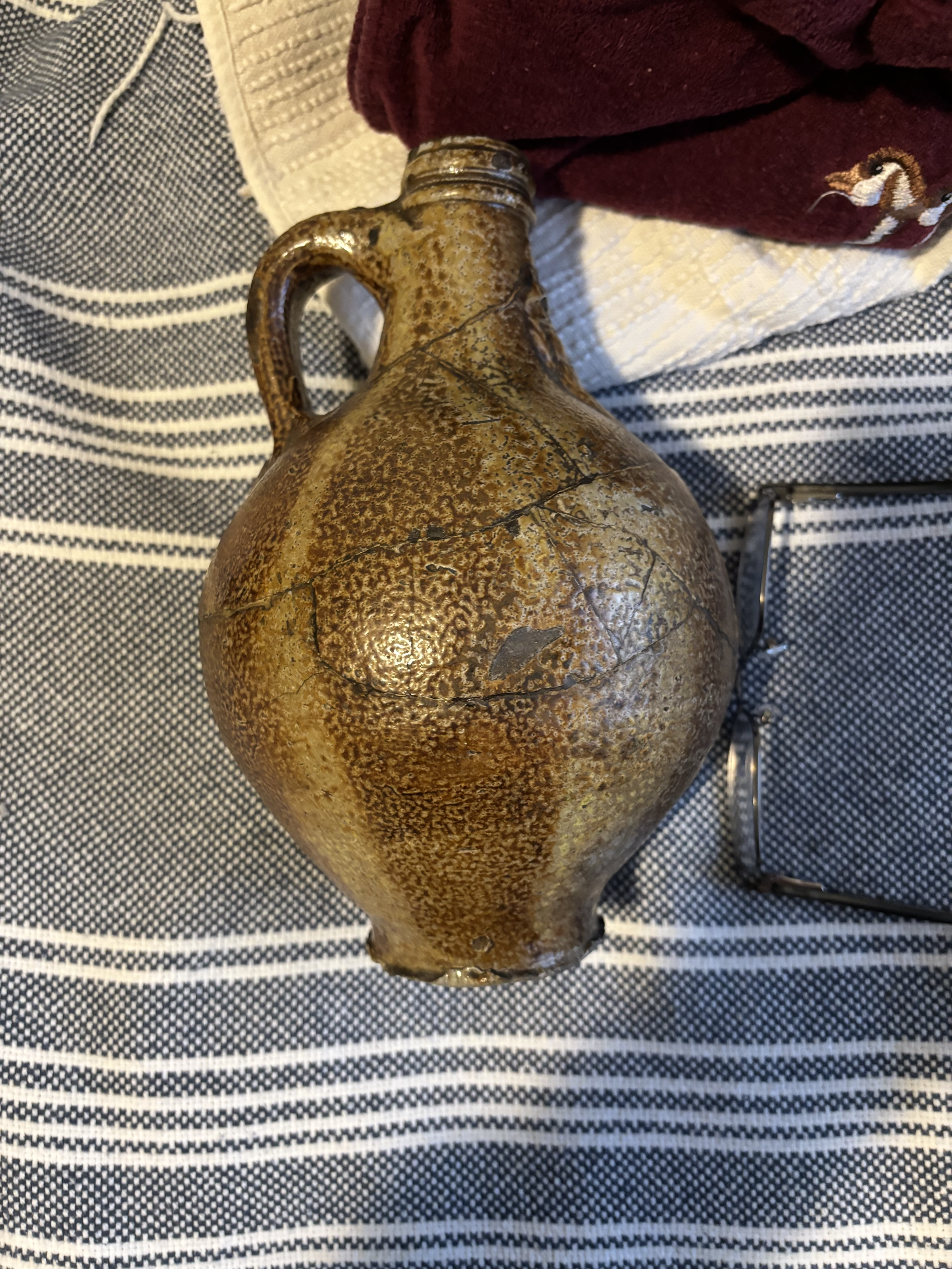 Note: Jugs with visible repairs and cracking fetch much less than intact examples, but early 17th-century Bartmann jugs are still highly desirable among collectors of early ceramics and European export ware.