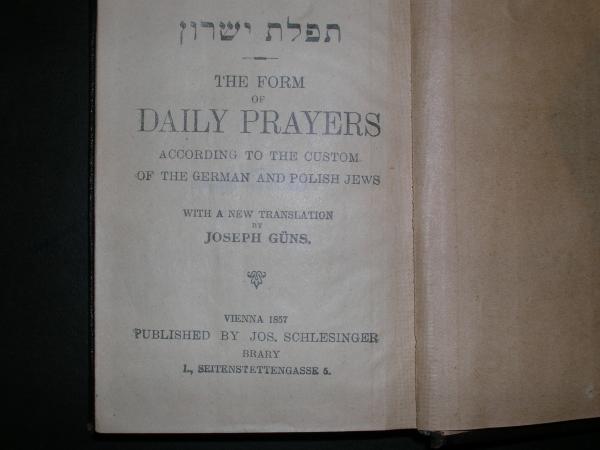 The book was published by Jos. Schlesinger in Vienna in 1857. The text is in both English and Hebrew.