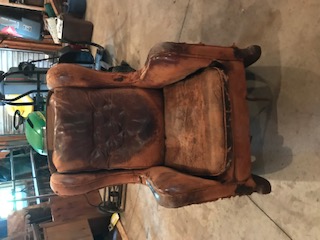 Old leather wing back rocking chair.  Quite massive.  Looks like somemething out of an old West hunting lodge or saloon. Horse hair batting on arms, cotton? in cushions. Coil spring seat.  Found in basement of father-in-law's house during estate clean up.  Wife wants to restore it as a DIY project to honor her father.  I just want to get some idea of what it is, where and when its from before we start tearing it apart and destroy the chair that Teddy Roosevelt might have had in his log cabin!