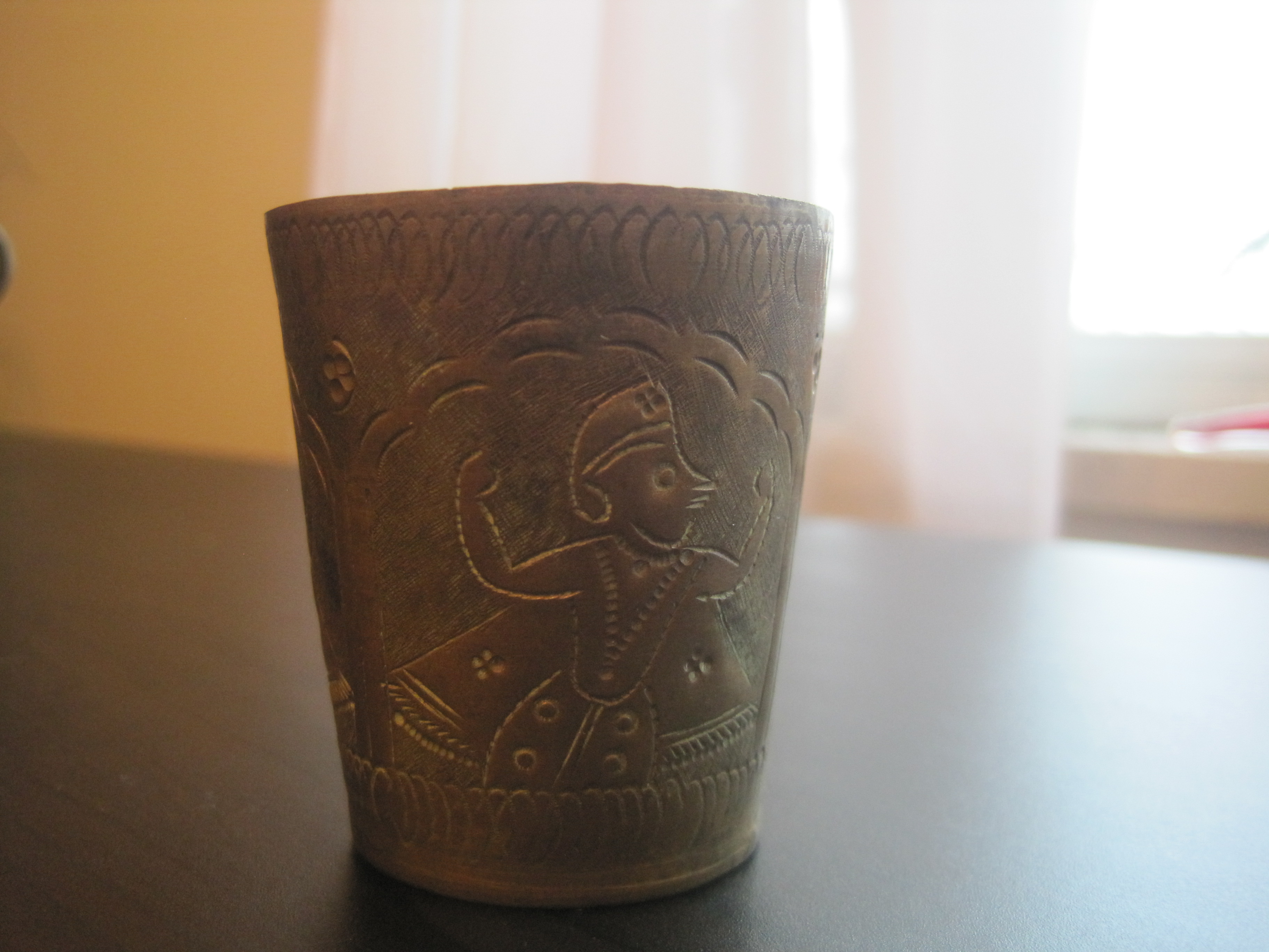 It's the same pattern all the way round with 3 of the same looking figures. I really dont know the history, only that my grandfather had it and eventually came to me. Dont know a thing about it, only that I think it's ugly and I pretty much kept it hidden away for many years untill I came across it recently . I'm mainly curious to find out where it came from, and what it is. I dont expect it to be worth a whole lot.