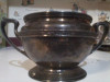A five petaled flower with a crown, and michael the archangel on top of a dragon