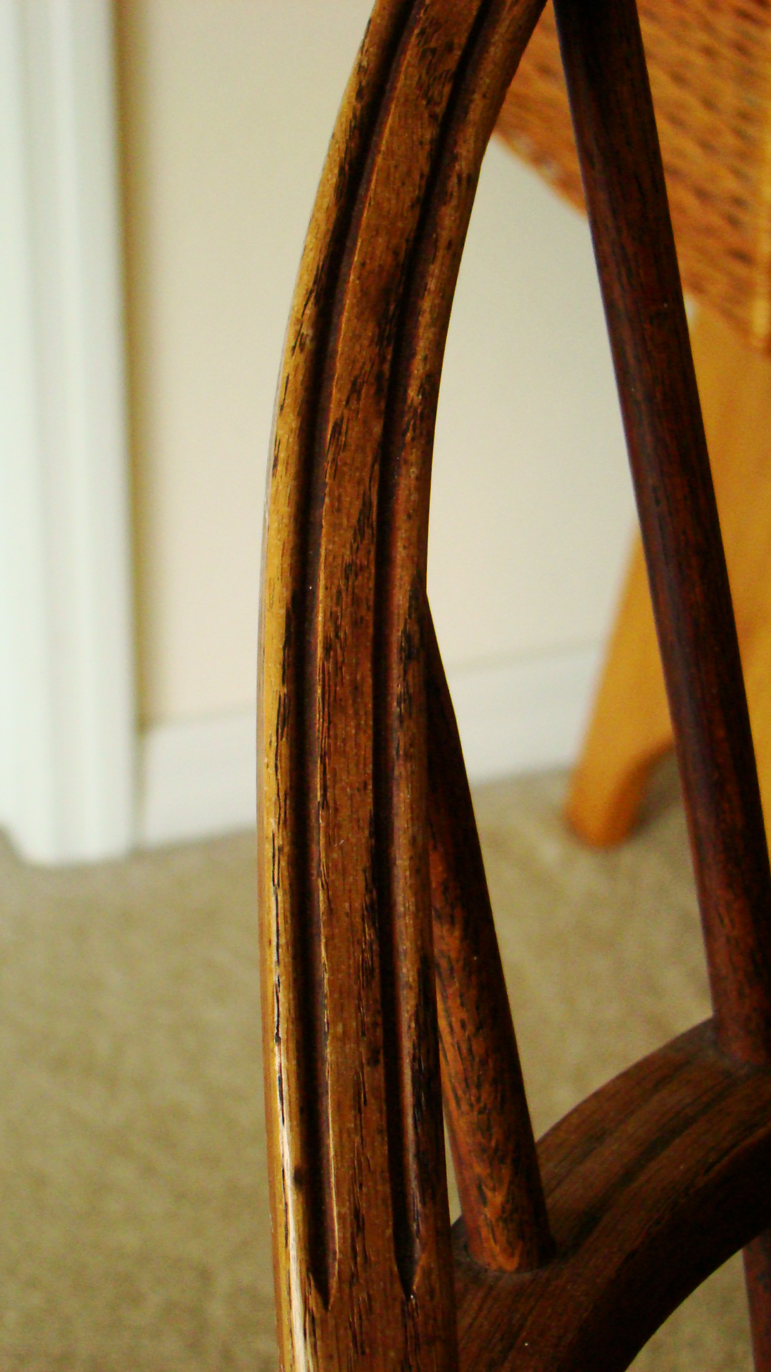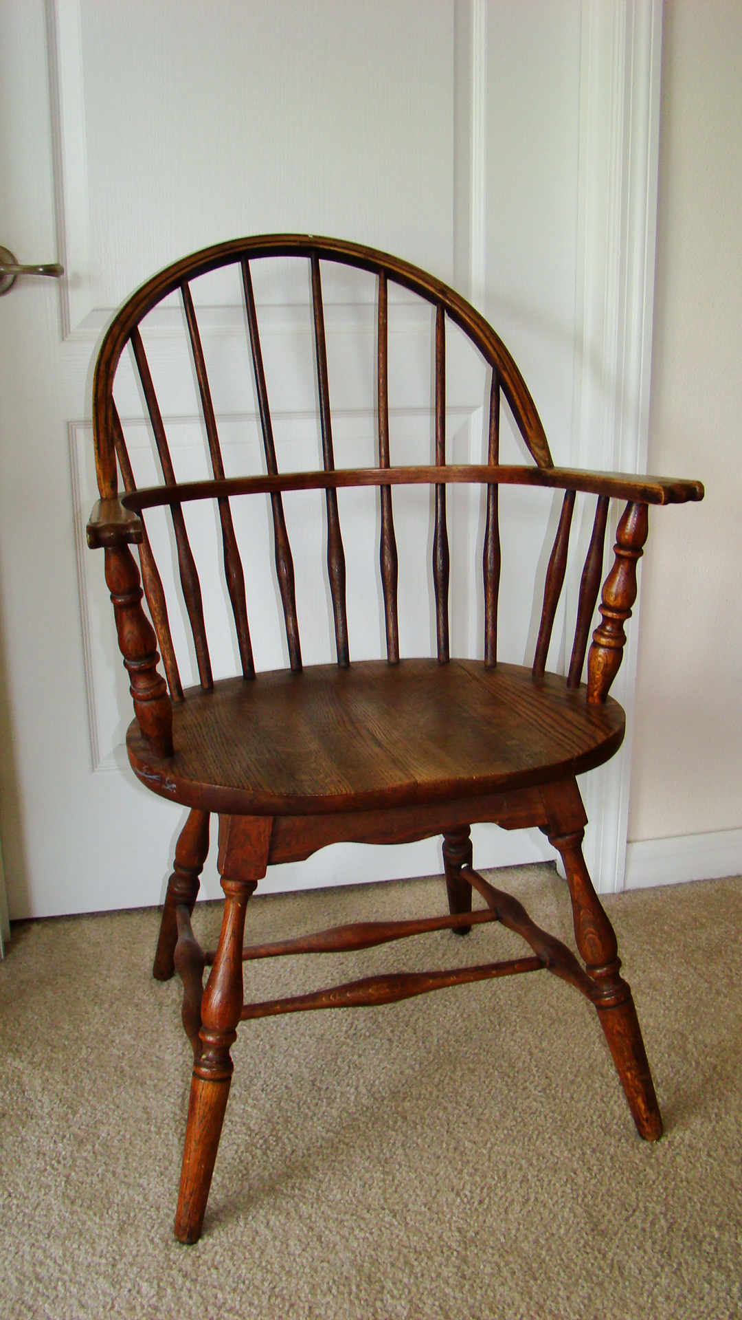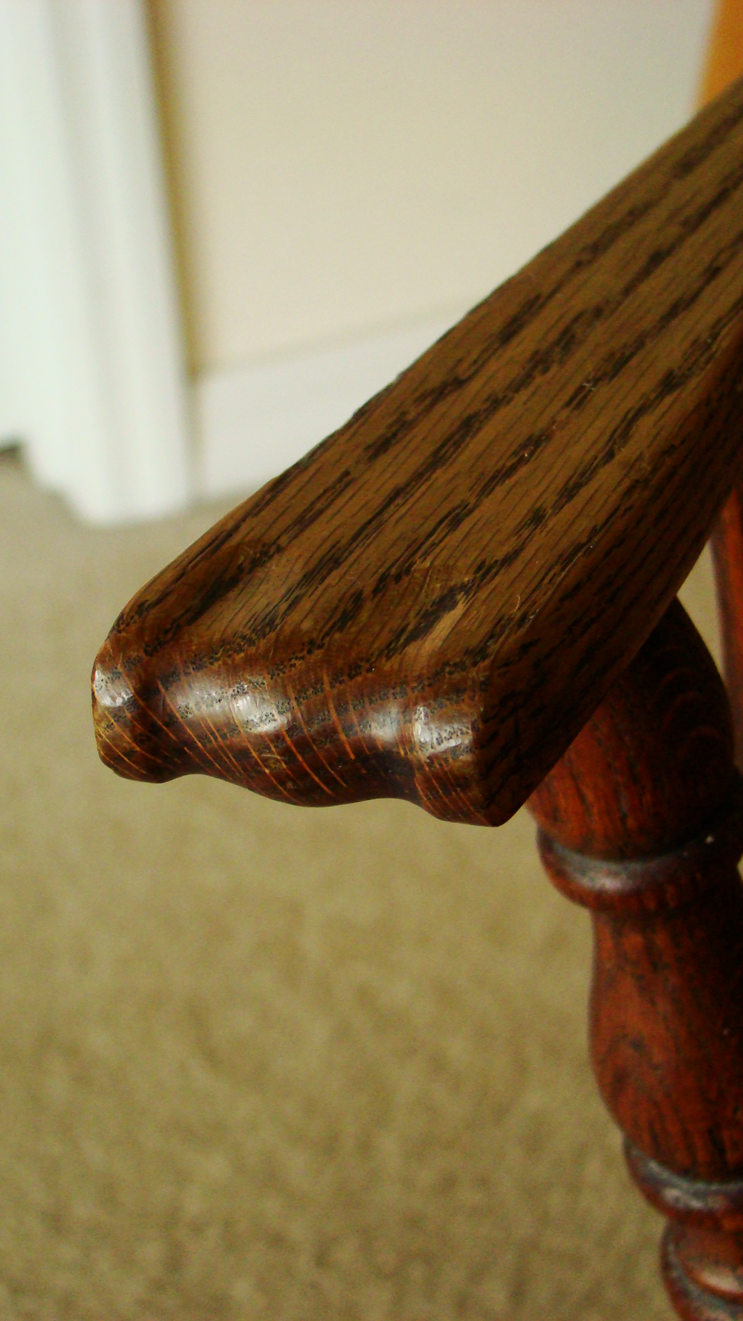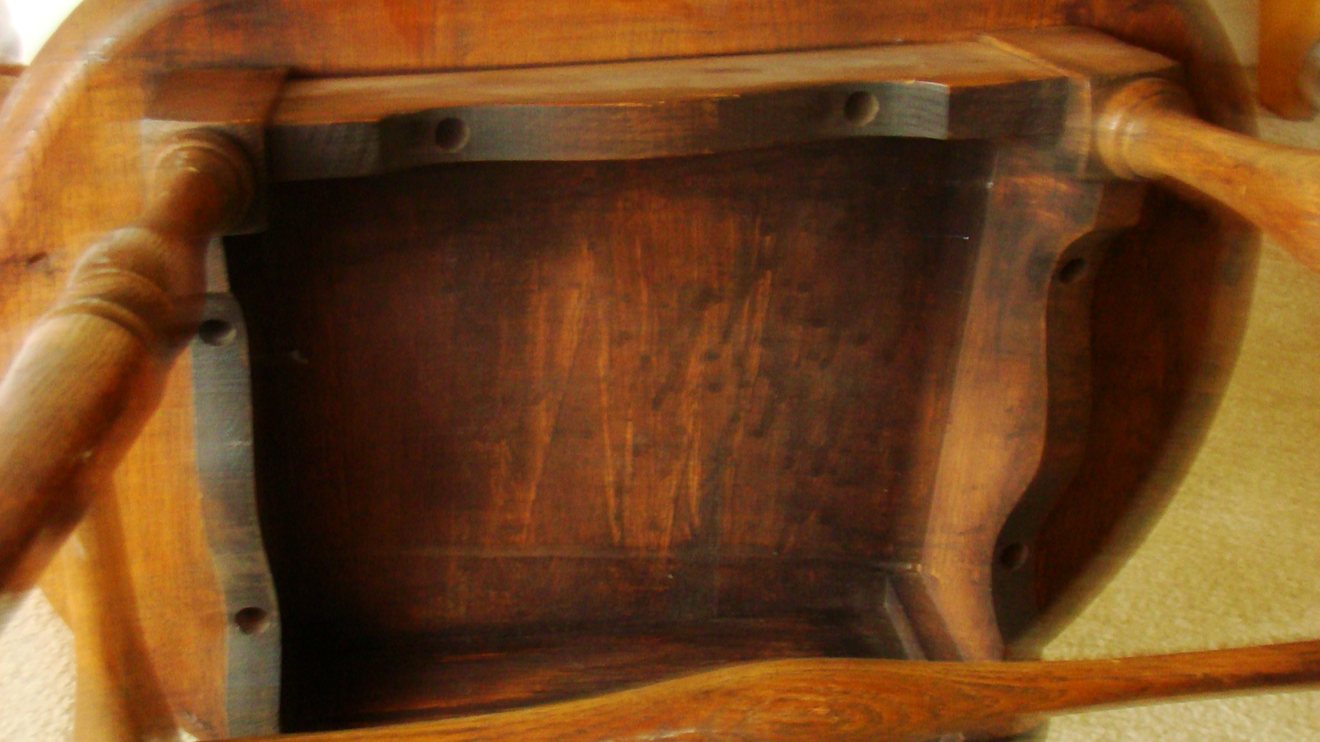 Made of oak looks like old type screws on the bottom original. groves on the arms