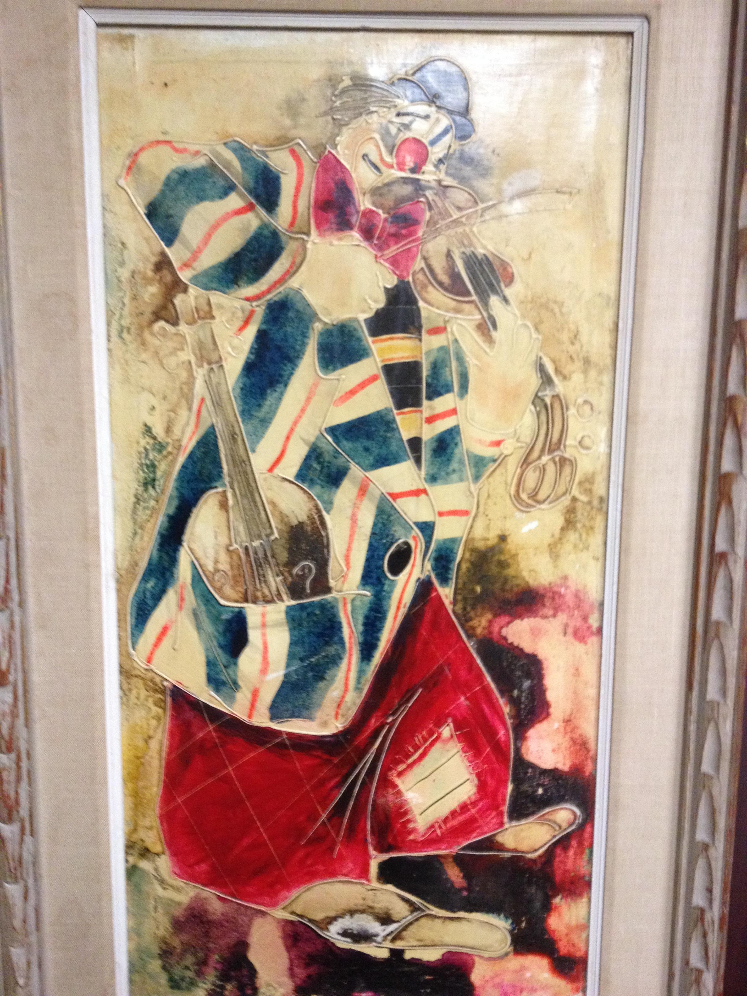 My dad seems to think the painting has some value. I got to admit his story regarding the painting is pretty fascinating. The painting doesn't have a signature and it has some damage especially on the bottom right my dad said me and my sister tried to sign the painting when we were kids. The painting is a clown playing a violin with another violin in his jacket pocket. I would really appreciate any assistance.