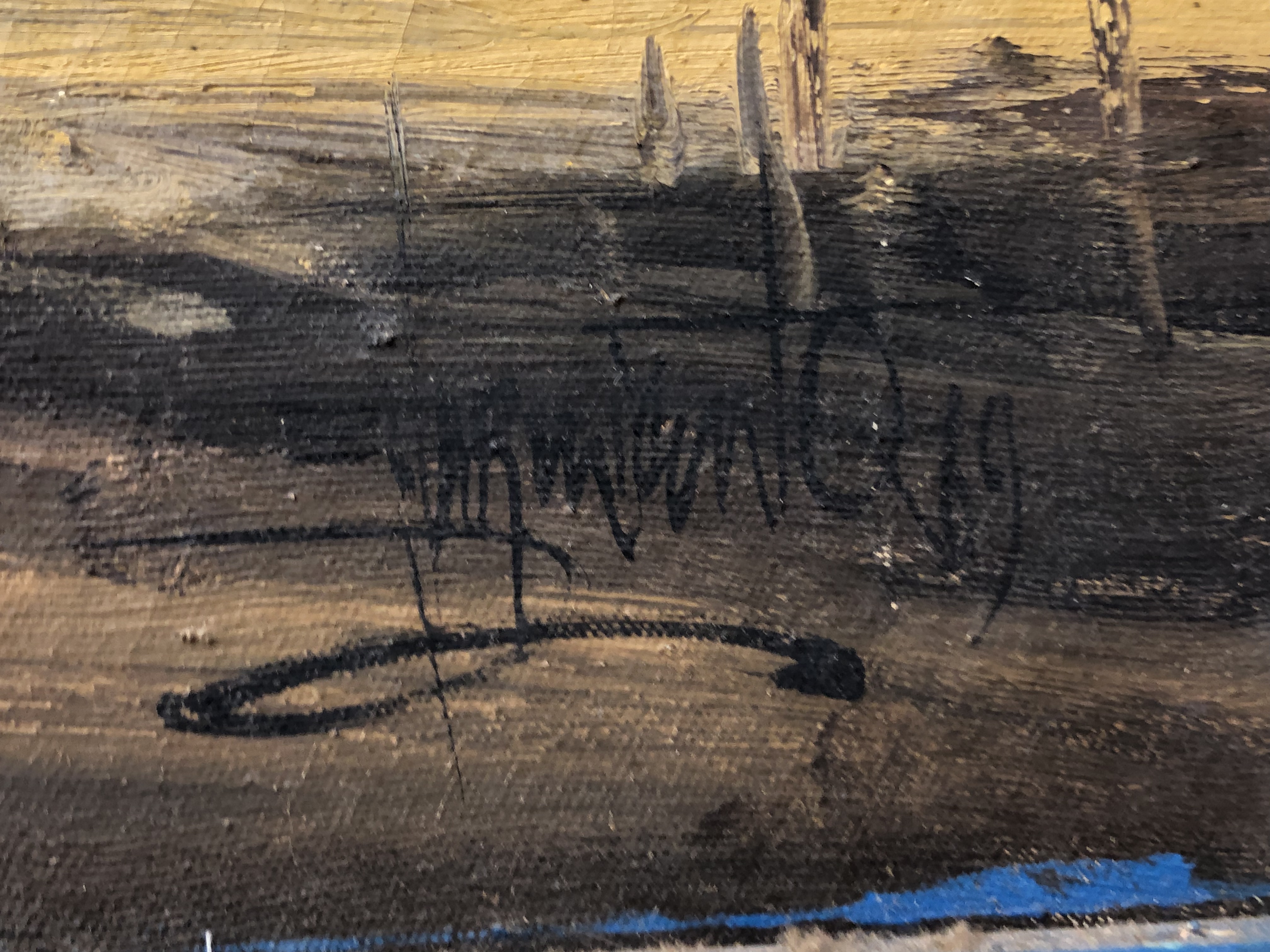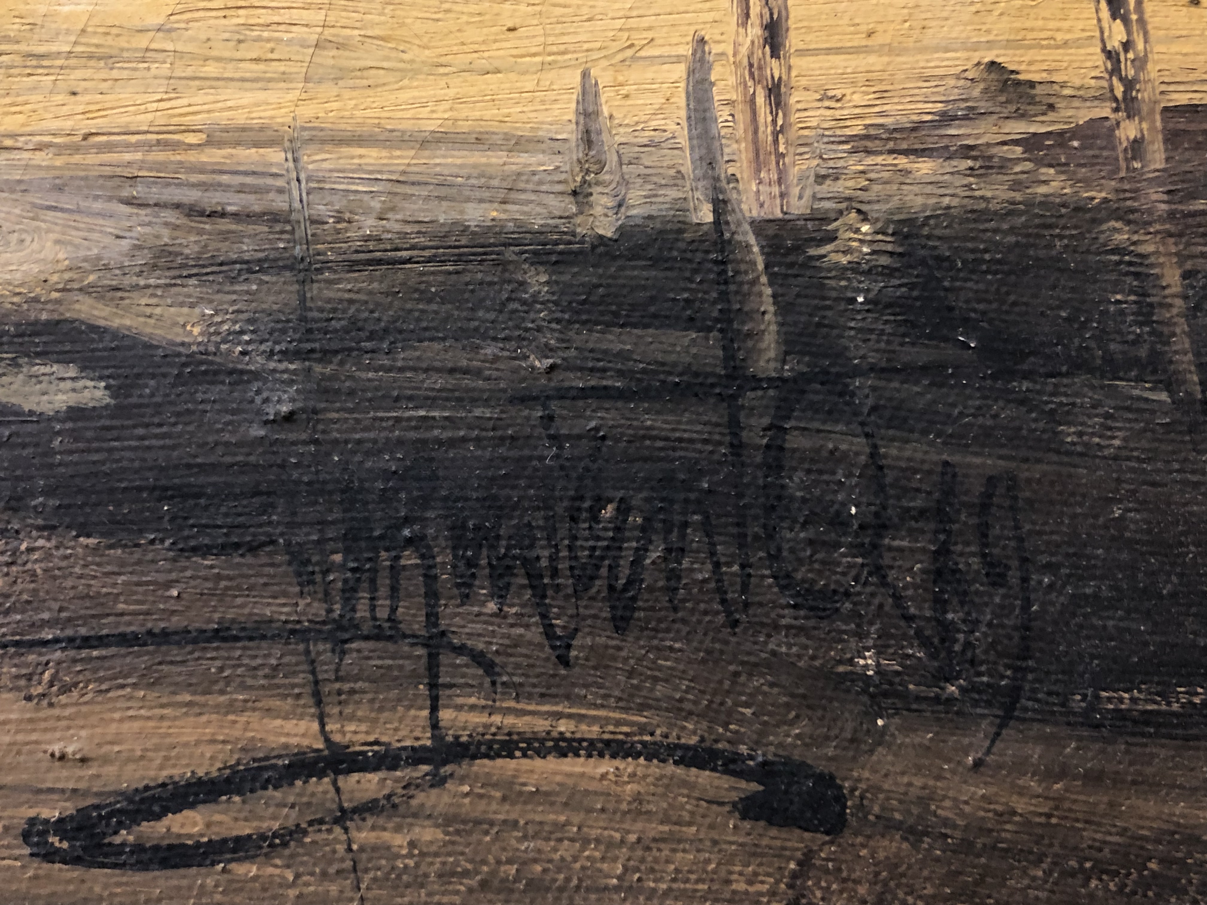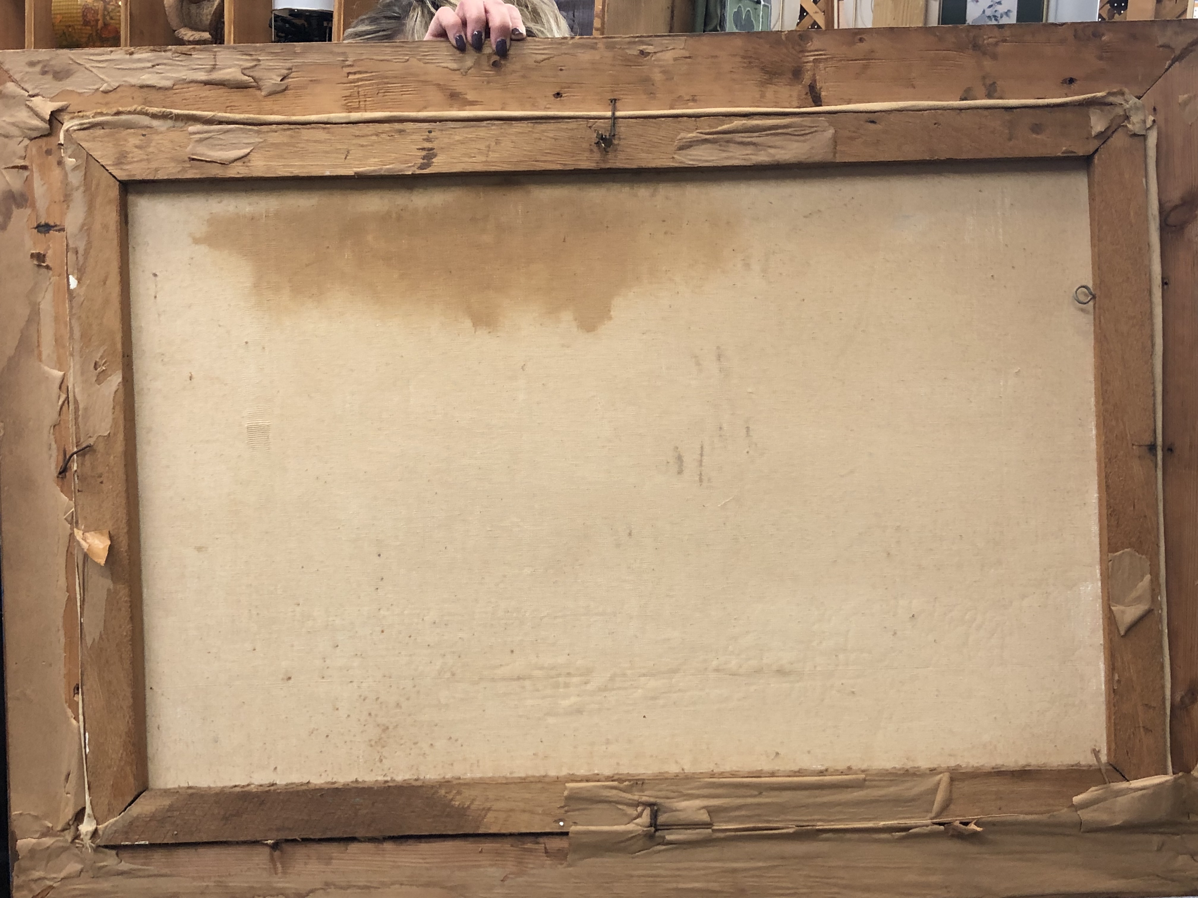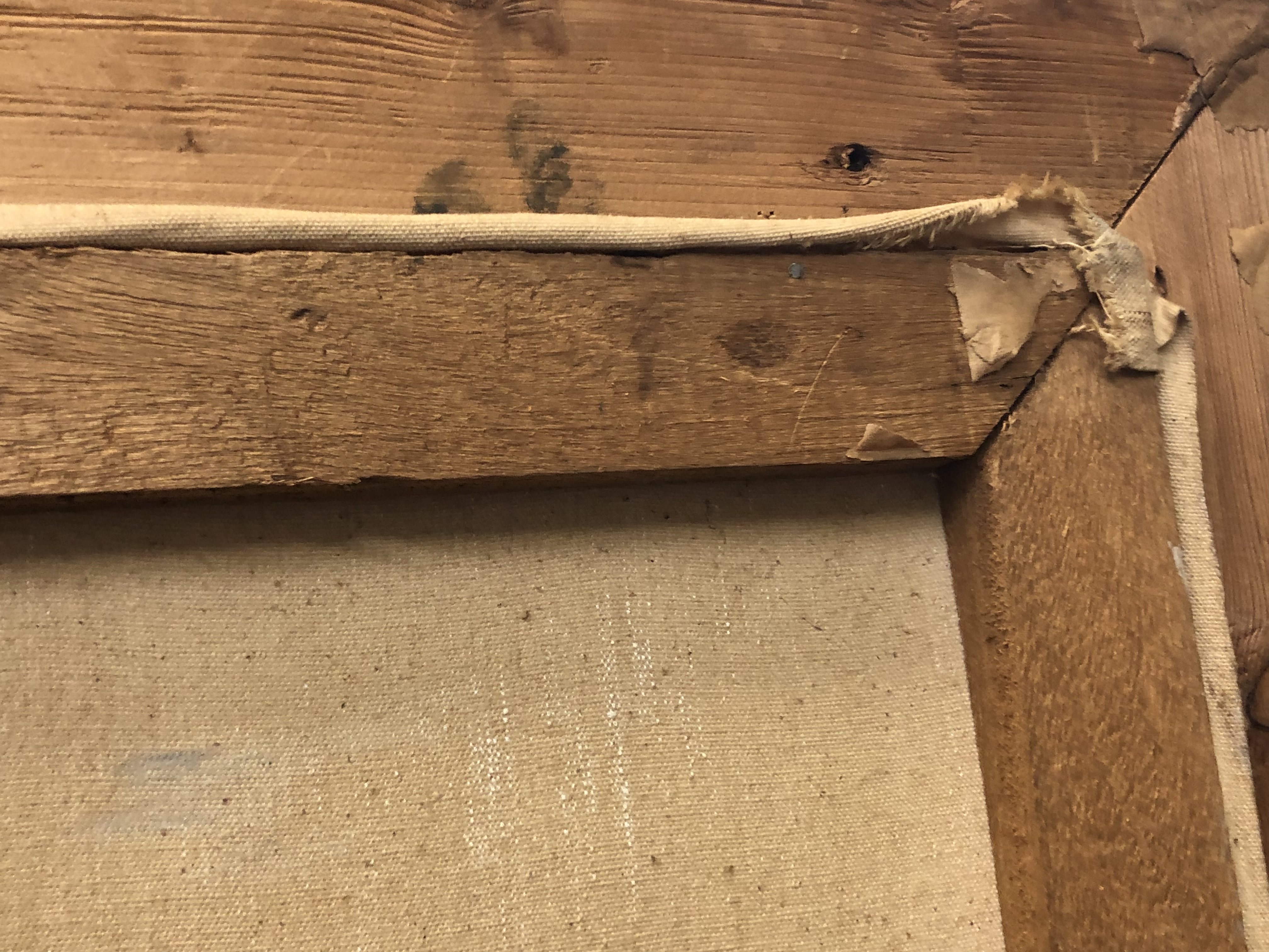 Distinguishing marks Signature I can’t make out. Old canvas and old mounted wood
