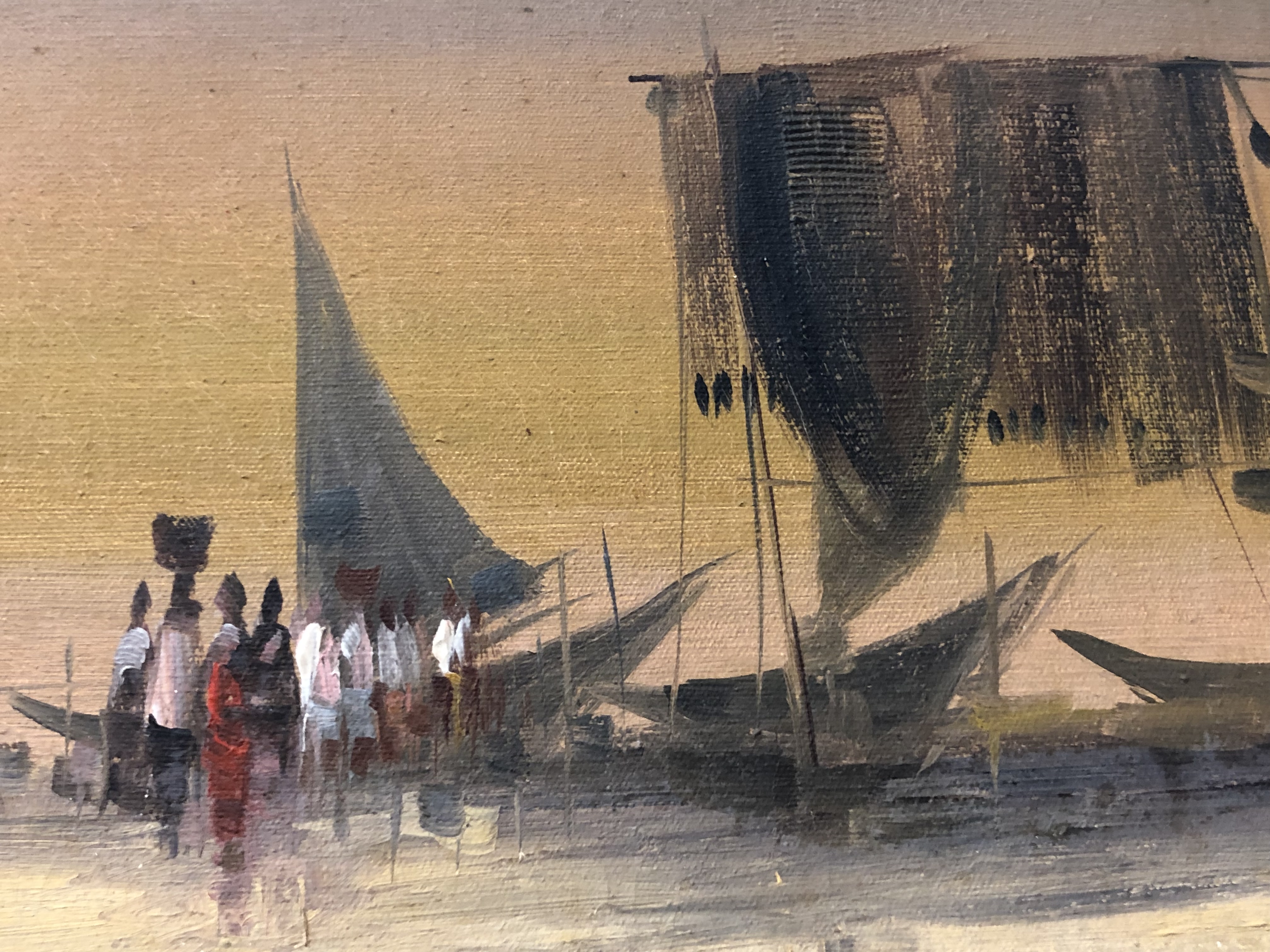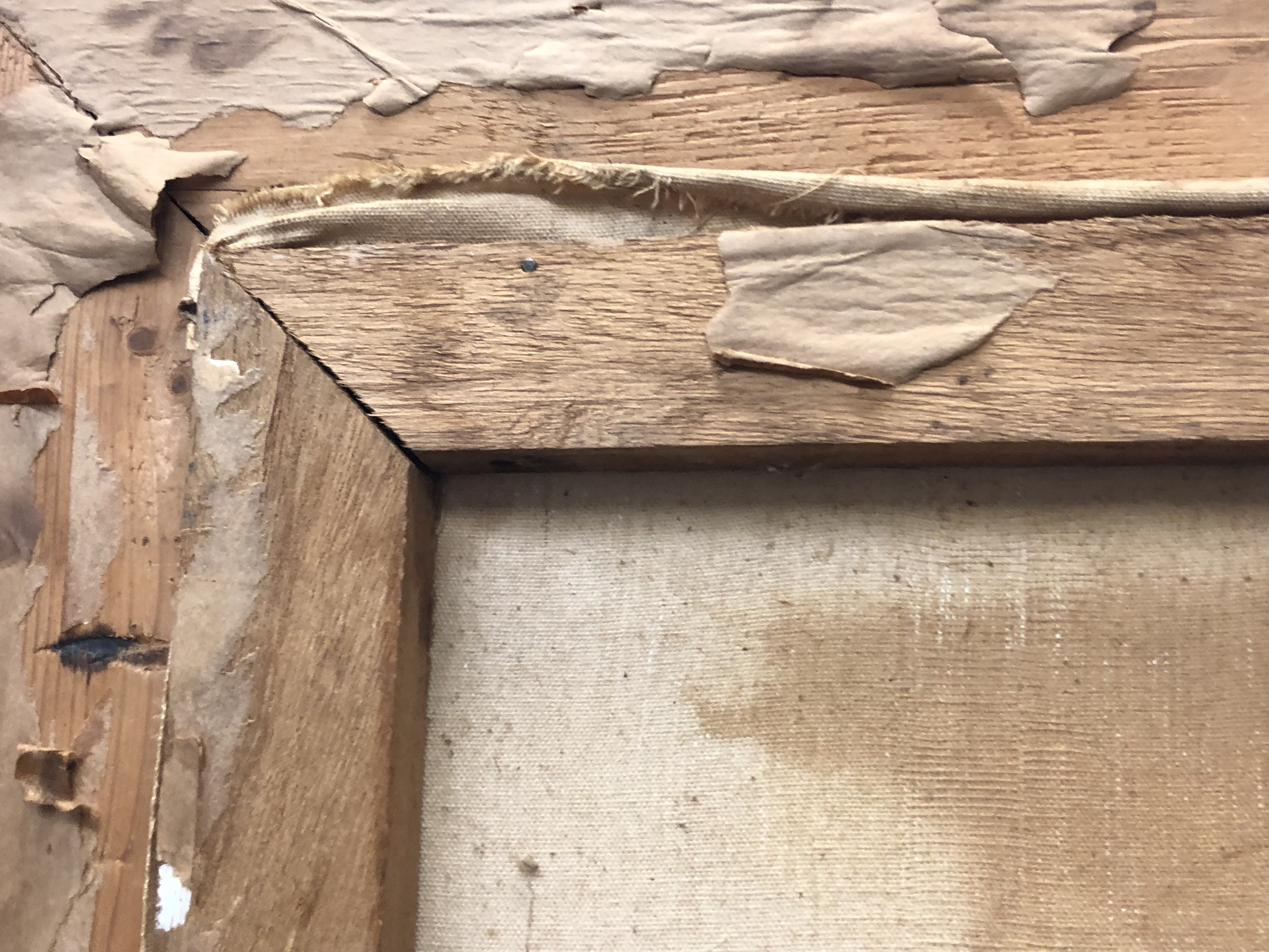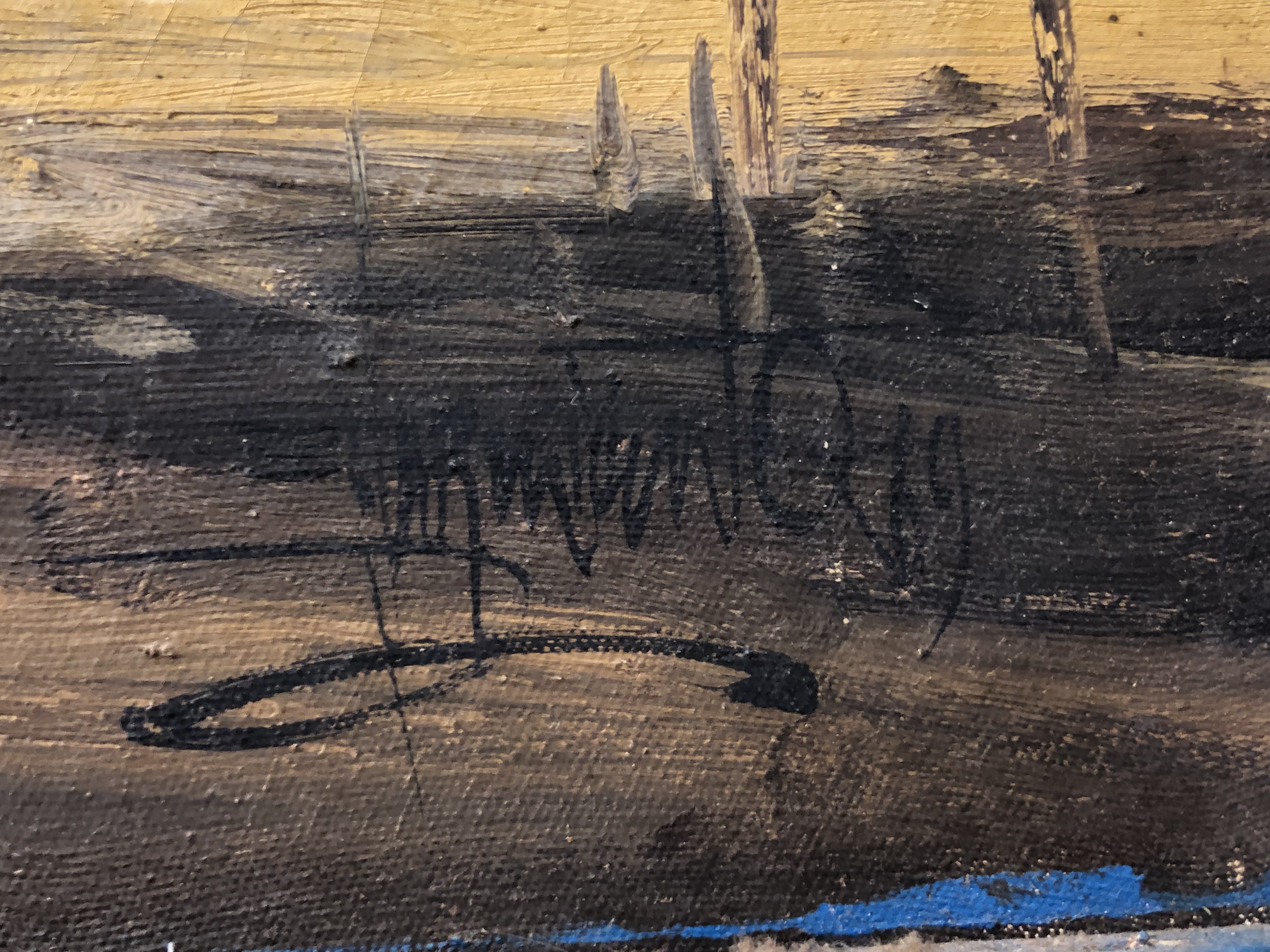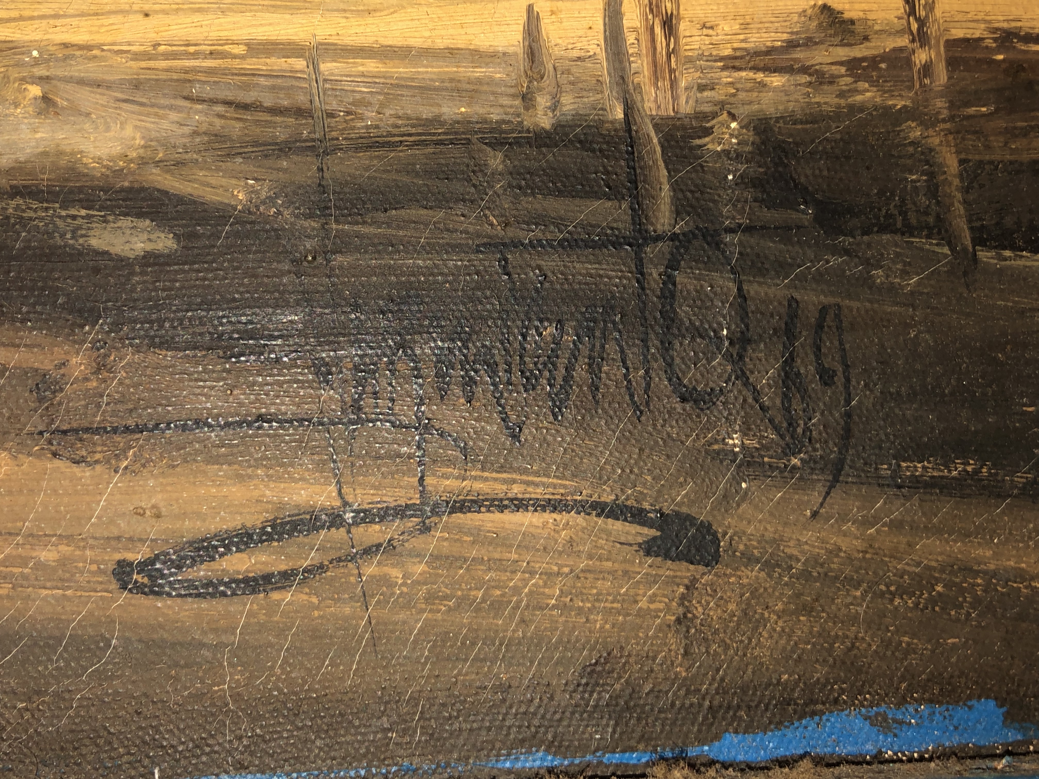Distinguishing marks Signature I can’t make out. Old canvas and old mounted wood