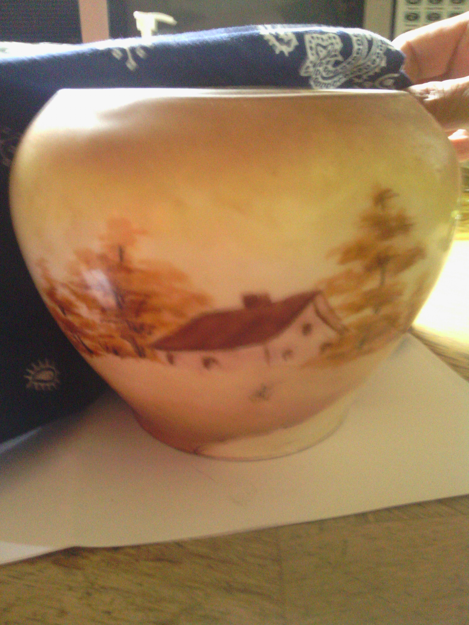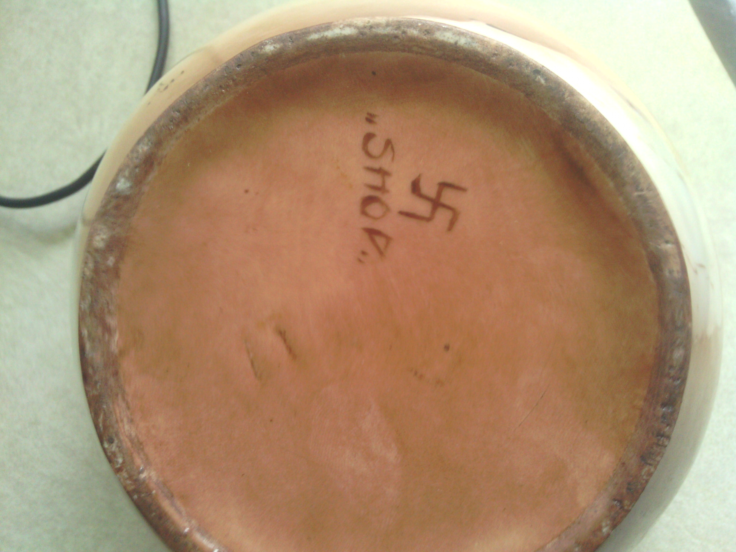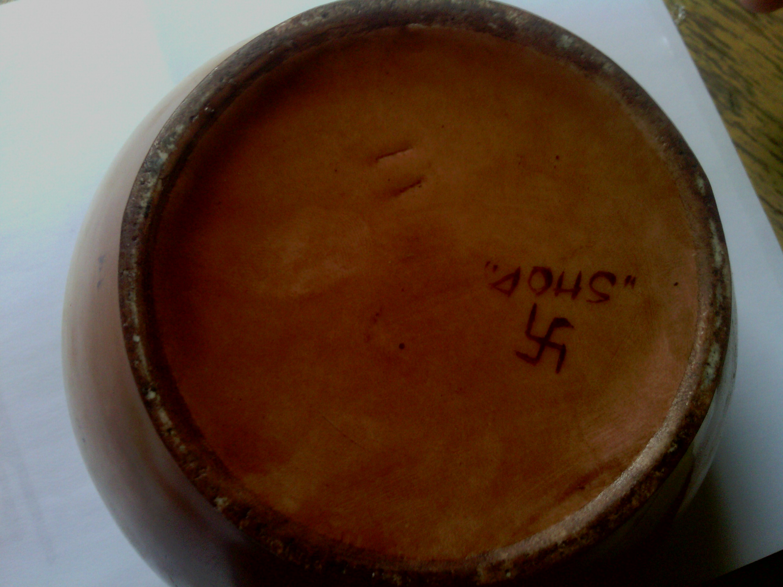 I have a old vase not sure if its a german or and Indian pice. It has what looks to be a swastika symbol or it could be and indian symbol. The pic on the frount of the vase is of a barn or a house with landscape. Itis a buttiful pice.