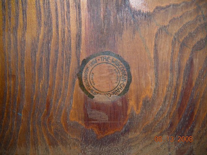 This rocking chair has been in the family since 1914. The back and seat were formed out of one curved piece of wood. It is stamped with "Wisconsin Chair Company" under the seat. It appears that it has never been restored because of the natural wear on the arm rests. It is a very solid piece with no major cracks in the wood.
