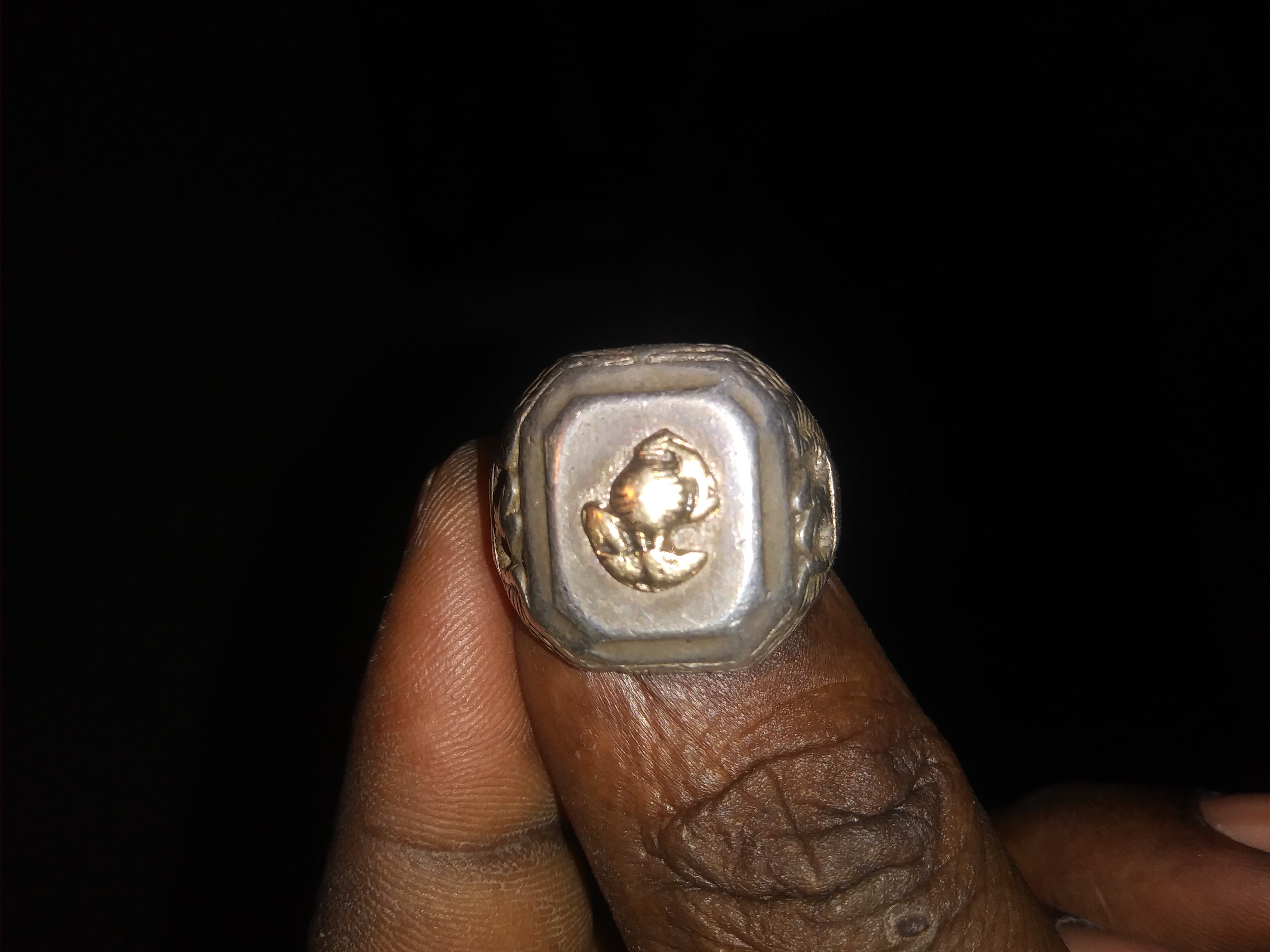 Might be a Mexican Biker Ring. Instagram has lots of pics of them so you could research and see if there's one like that. Also Facebook has a group Vintage Mexican Biker Rings and there's people there who would know. Online real vintage Mexican Biker rings sell for $200 and up