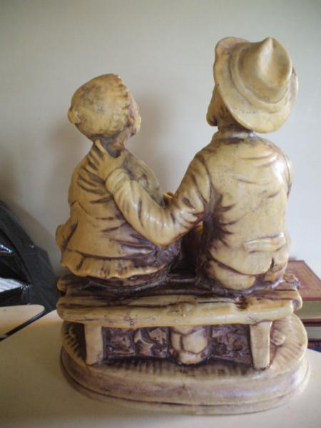 ITEM IS CREAM IN COLOR THERE ARE NO MARKS OR SIGNATURES ,NO BREAKS OR CRACKS IN PERFACT COND.IT IS VERY ,HEAVY IT SEEMS TO BE SOME TYPE OF STONE.I HOPE THAT SOME ONE KNOWS WHAT IT IS,AND WHERE IT CAME FROM