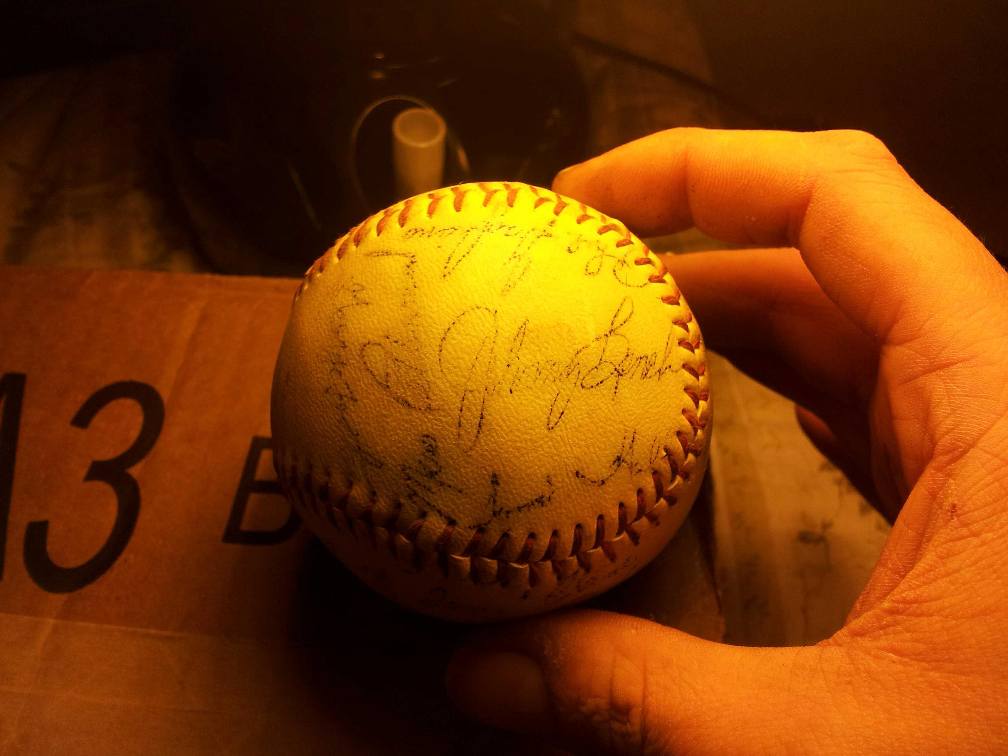 I was clearing out an old house today in SW Ohio and discovered this baseball sitting atop a brearu in the living room on a stand. It appears to be very old and has a ton of signatures on it. Here are a few: