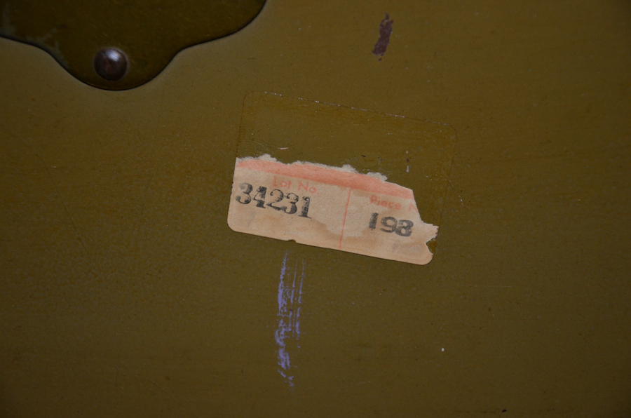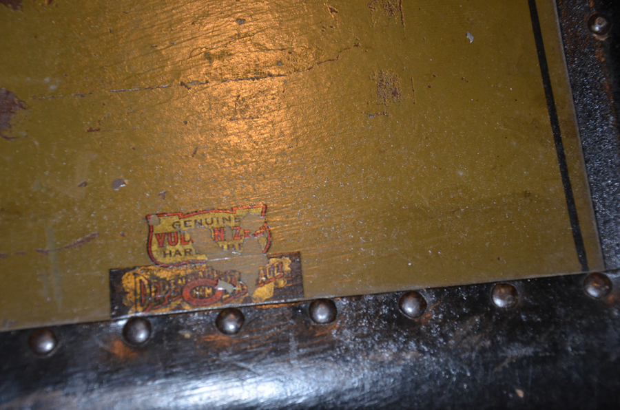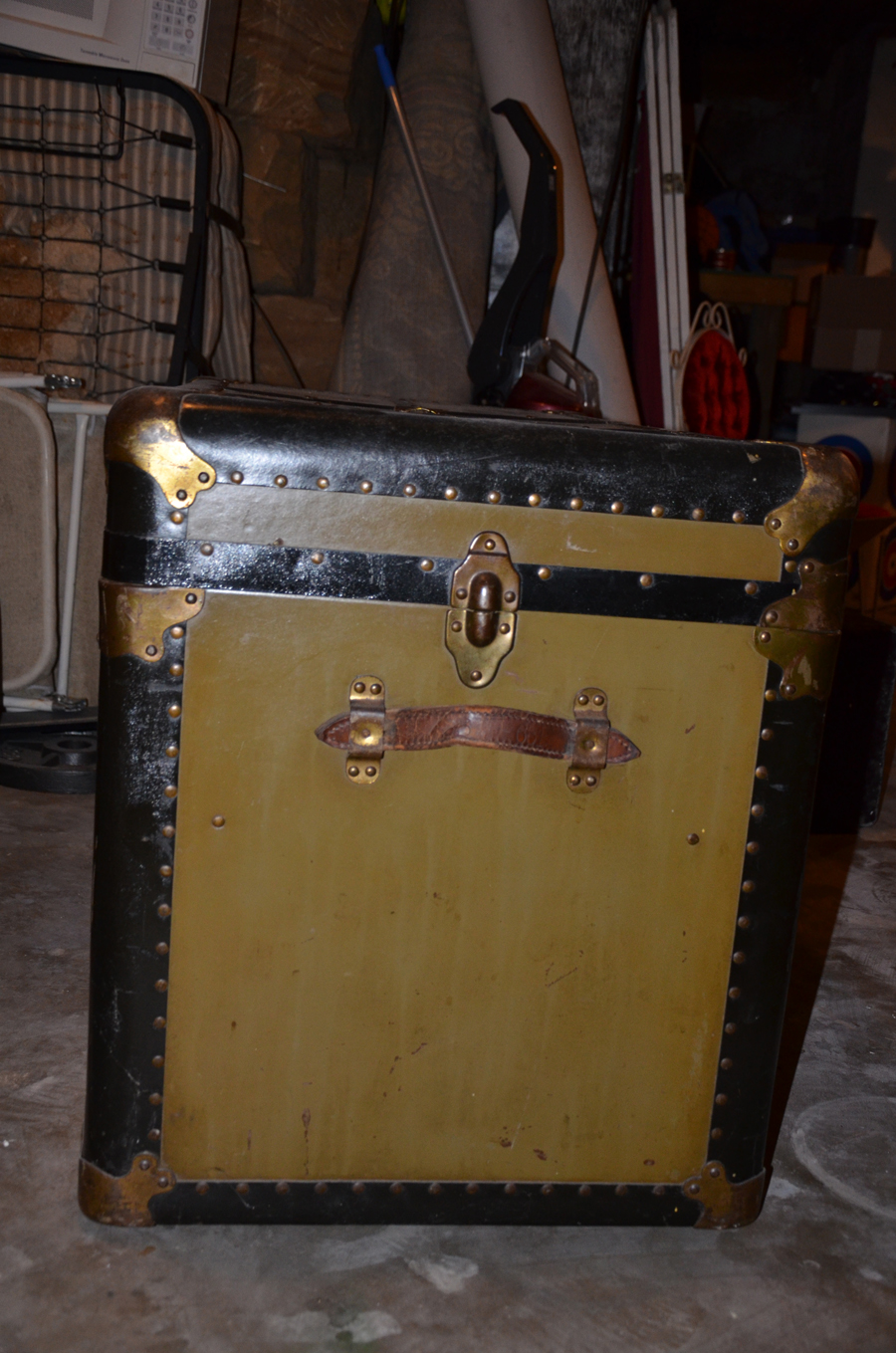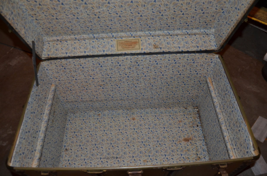 It is a Hirsfelder & Meaney Trunk.. it has a sticker on the back that says the numbers 32231 198 It has leather straps.. Inside a tag, saying "Unbreakable"