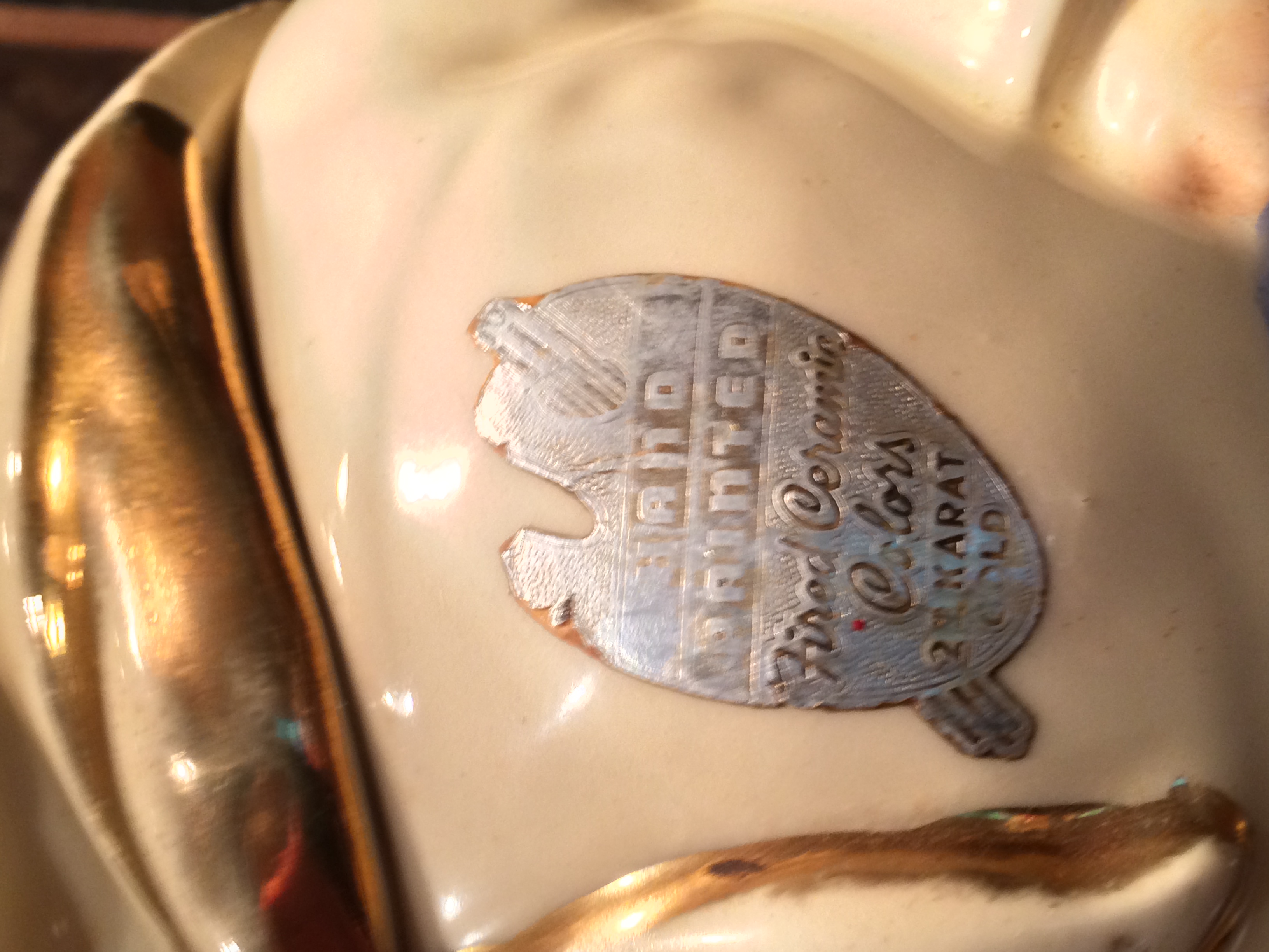 Distinguishing marks: GOB, USA imprinted on bottom, Silver painted seal indicating "hand painted 22 karat gold"