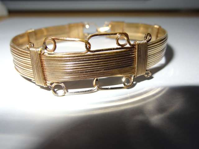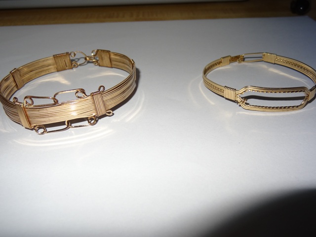 My father dug these braclets up in 1970, they were in an old mason jar where a house had once stood. I know that they are not gold but I am trying to find out their value and origin. I have taken them to two local antique shops who could not give me an answer as they have never seen anything like them before. I know that my grandfather was born in 1911 and he said that when he was a young man that people used to come through selling them. that is all I know about them. Thanks