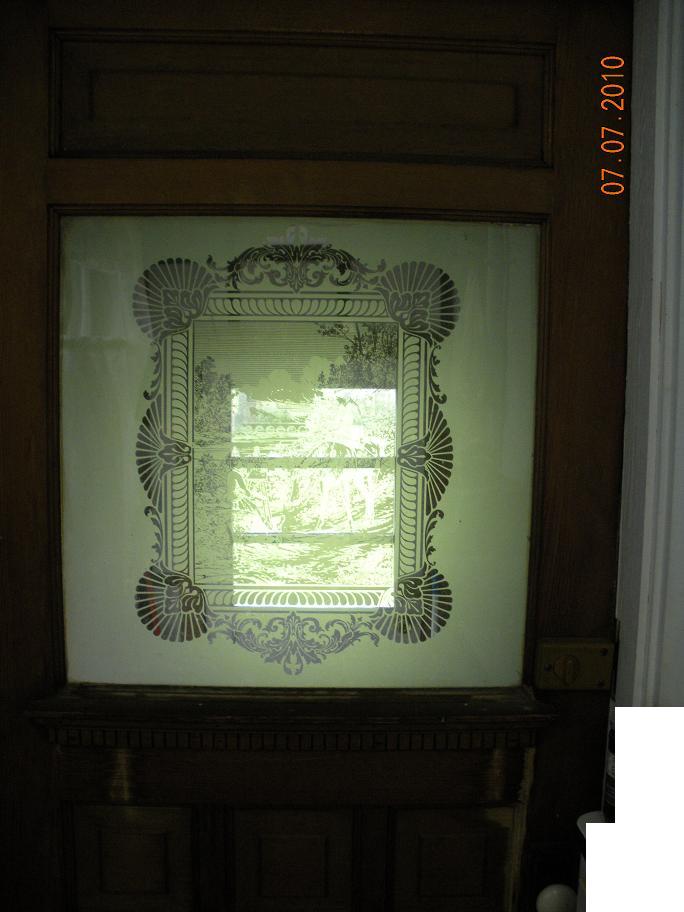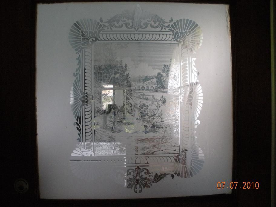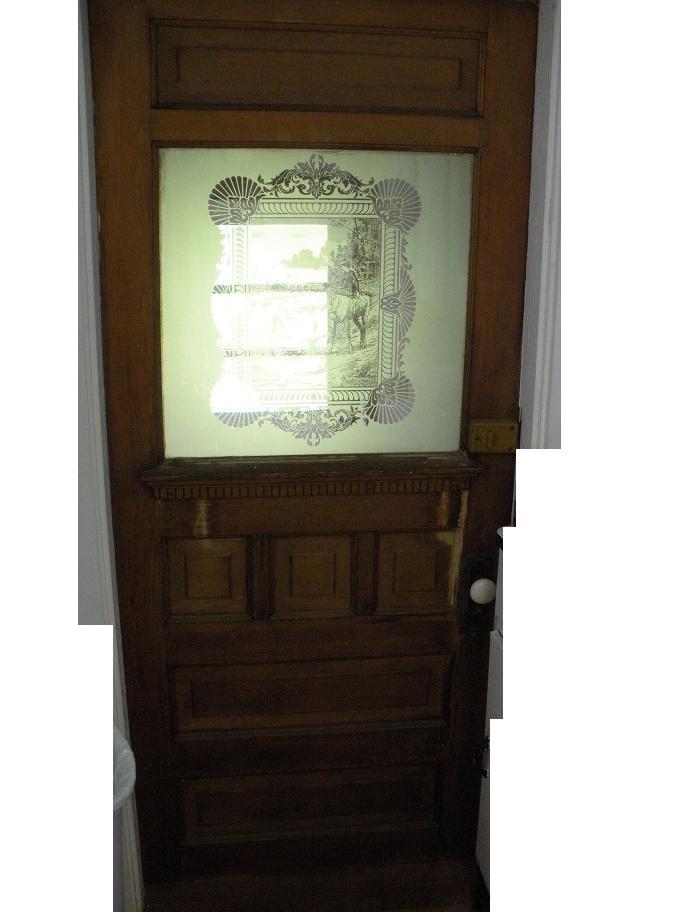 Beautiful antique door, etched glass, needs a new home.
