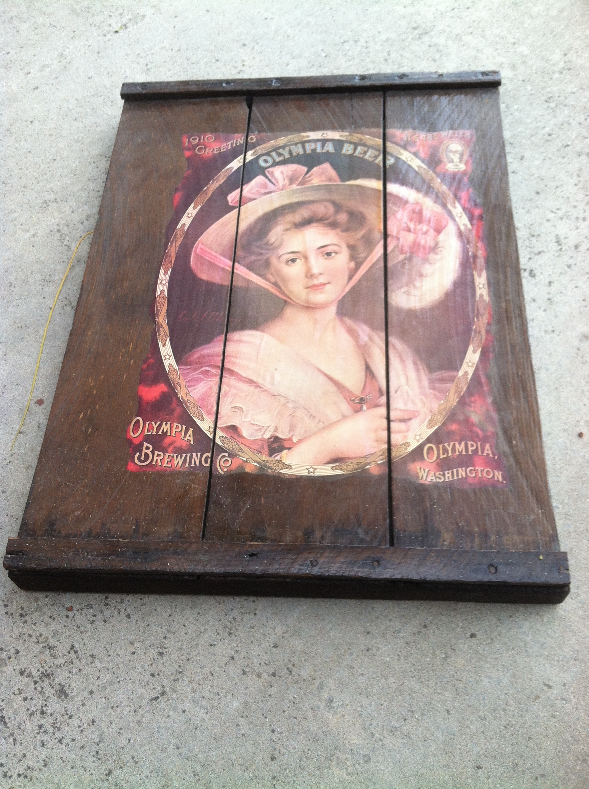 I found one on ebay called Olympia Wooden Beer Sign; "Original Raisinrak 1974" but the lady is facing the other way, in fact everything I found including posters, mirrors etc she is facing the other way.