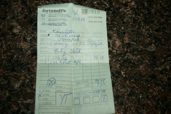 This was purchased by my mother for $100 from Fortunoff's in October 1969