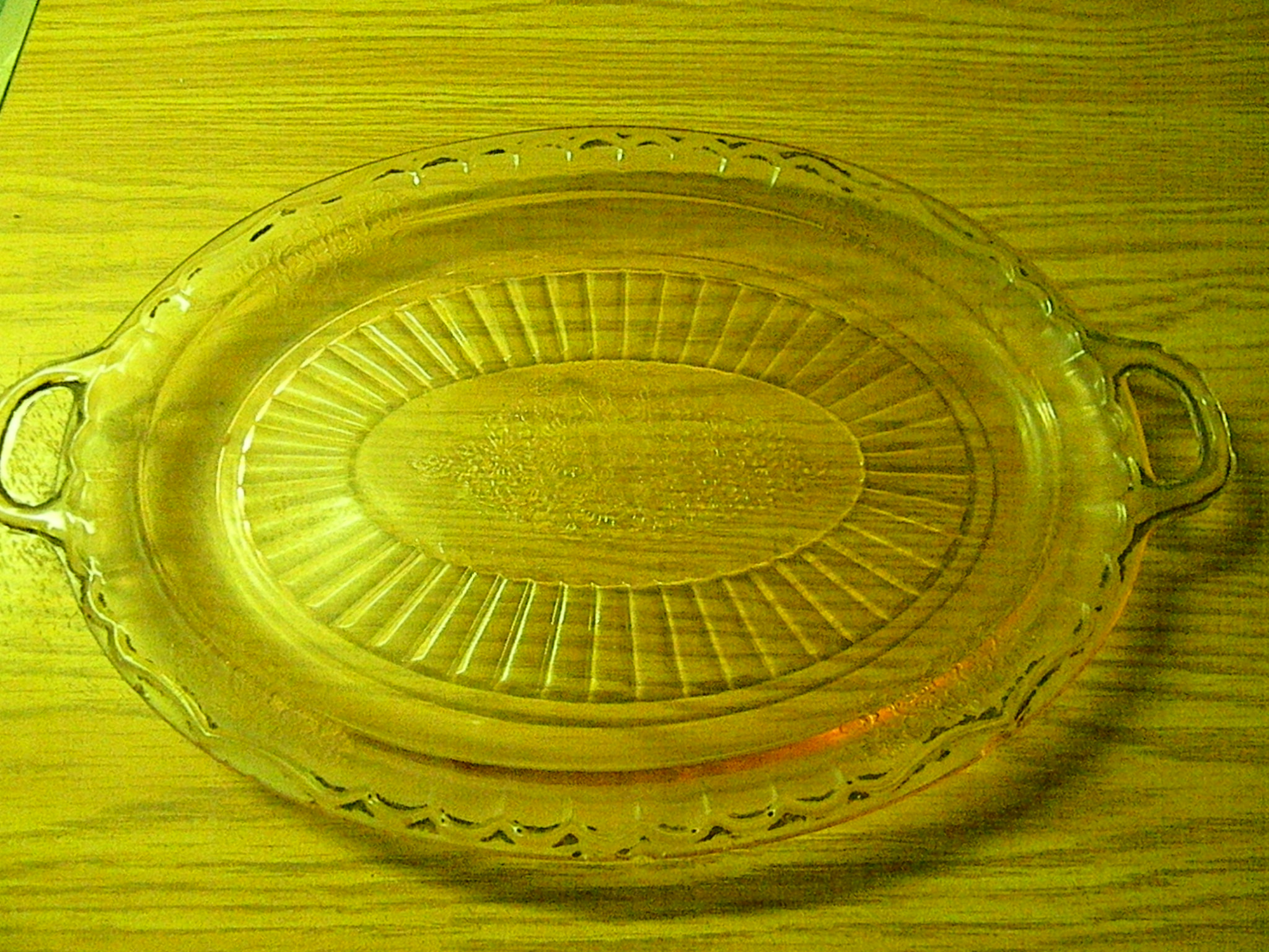 Vint Mayfair Pink Depression Glass Open Rose Handled Oval Platter Anchor Hocking
