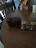 Right eye optic does has a slight dent on the outer edge which does not affect viewing. The fly wheel works smoothly and focuses well, and they display beautifully and function properly. The brass barrels detailed with a hunting scene motif.(Deer and hunting dogs)