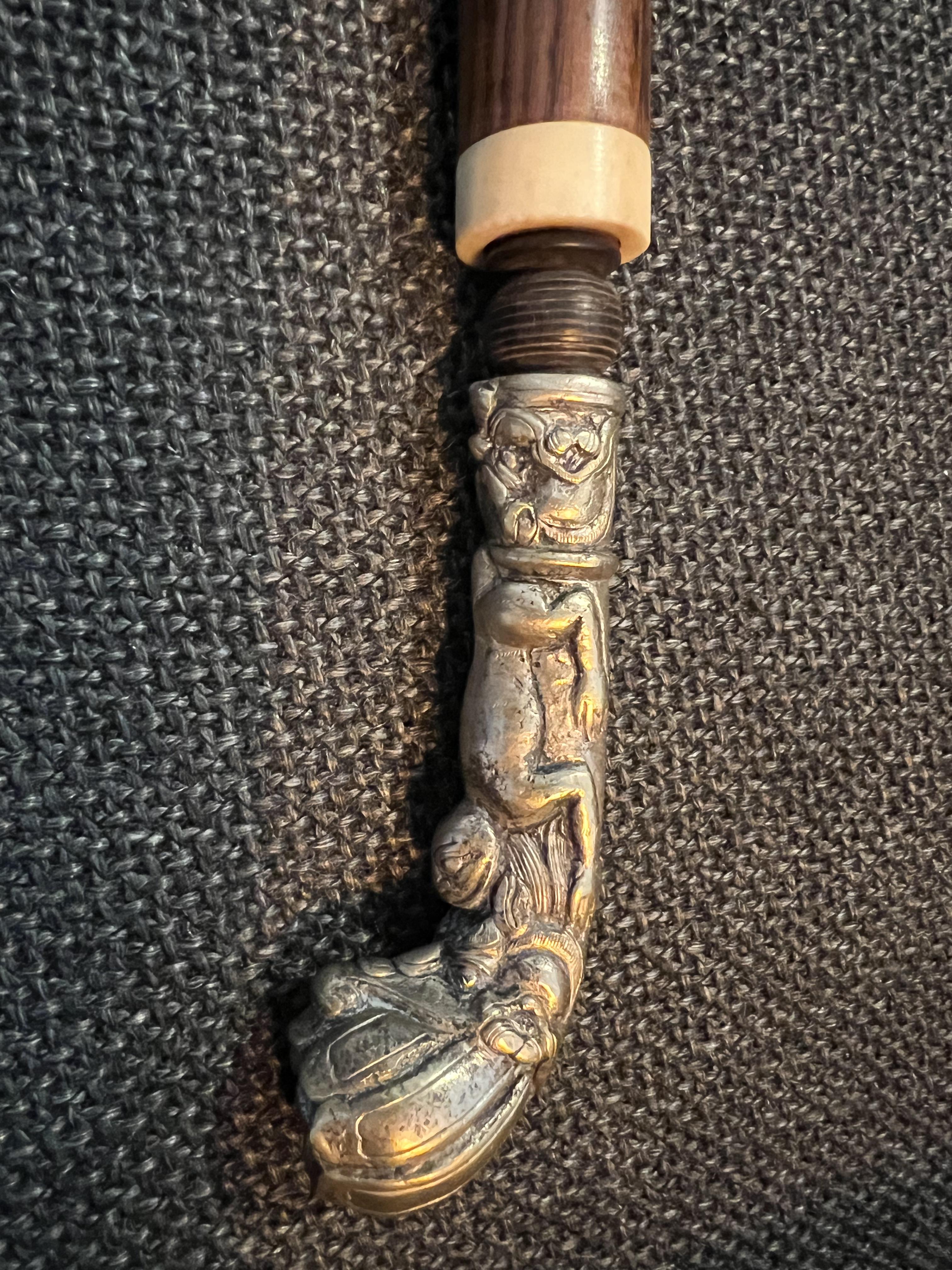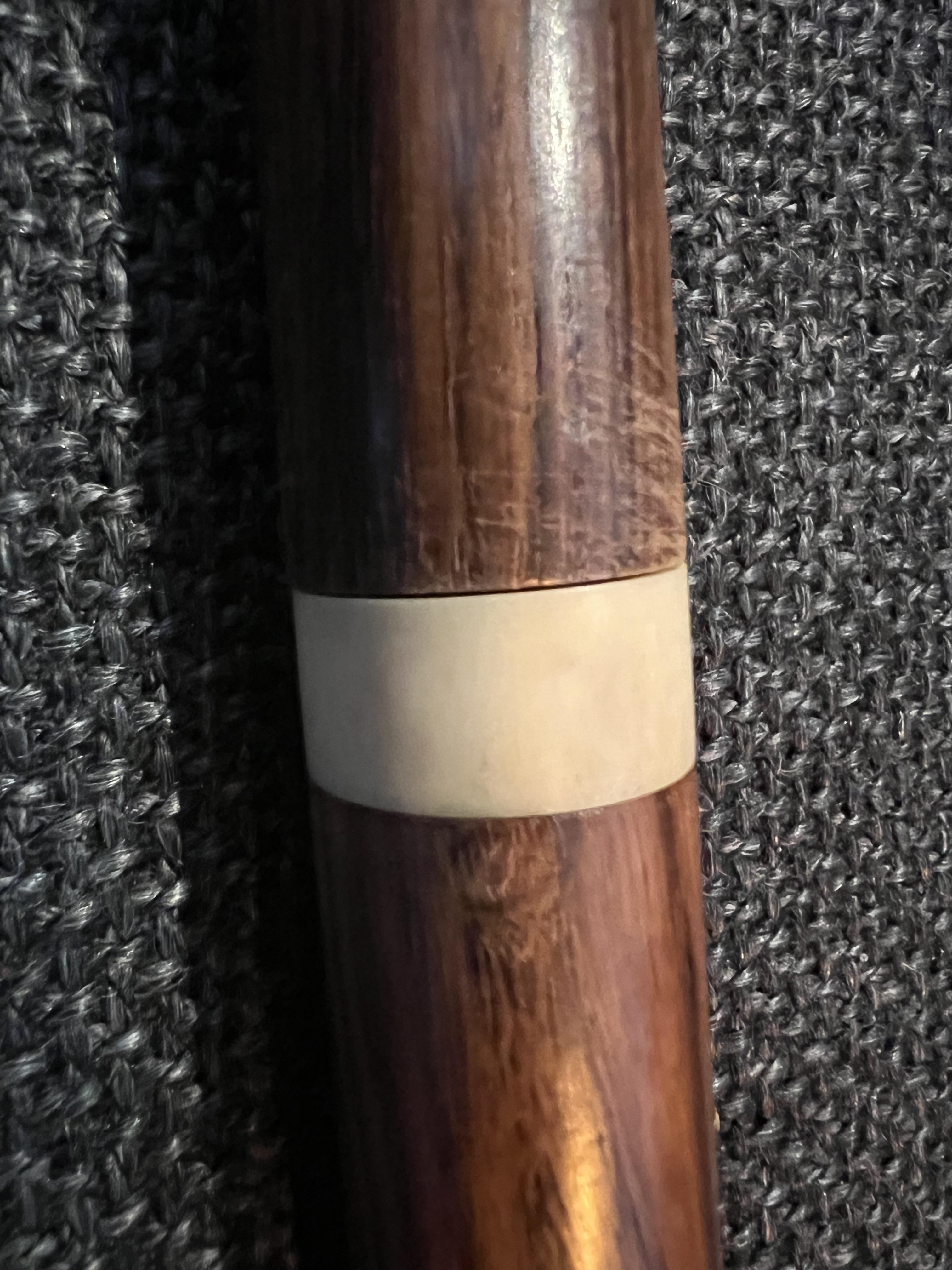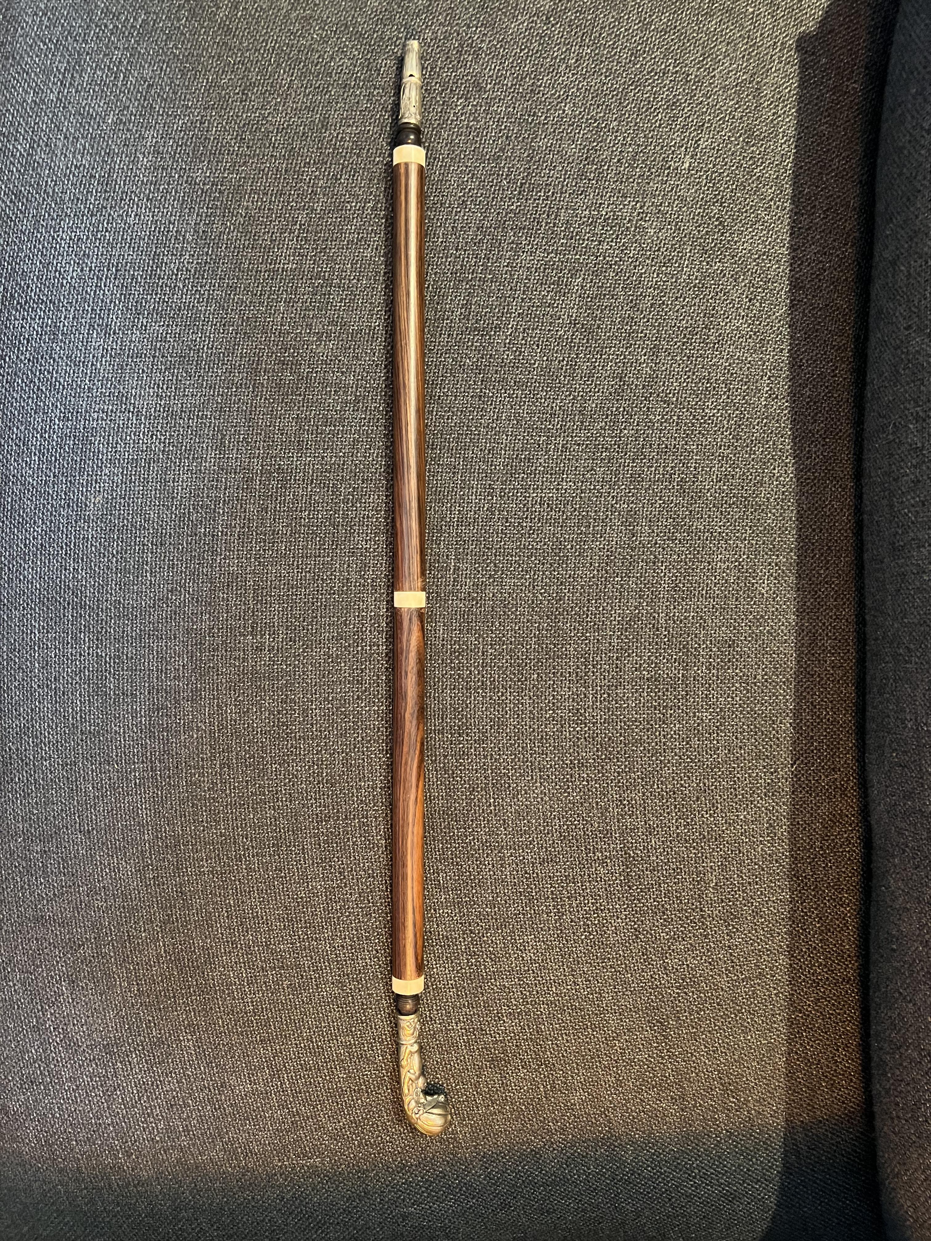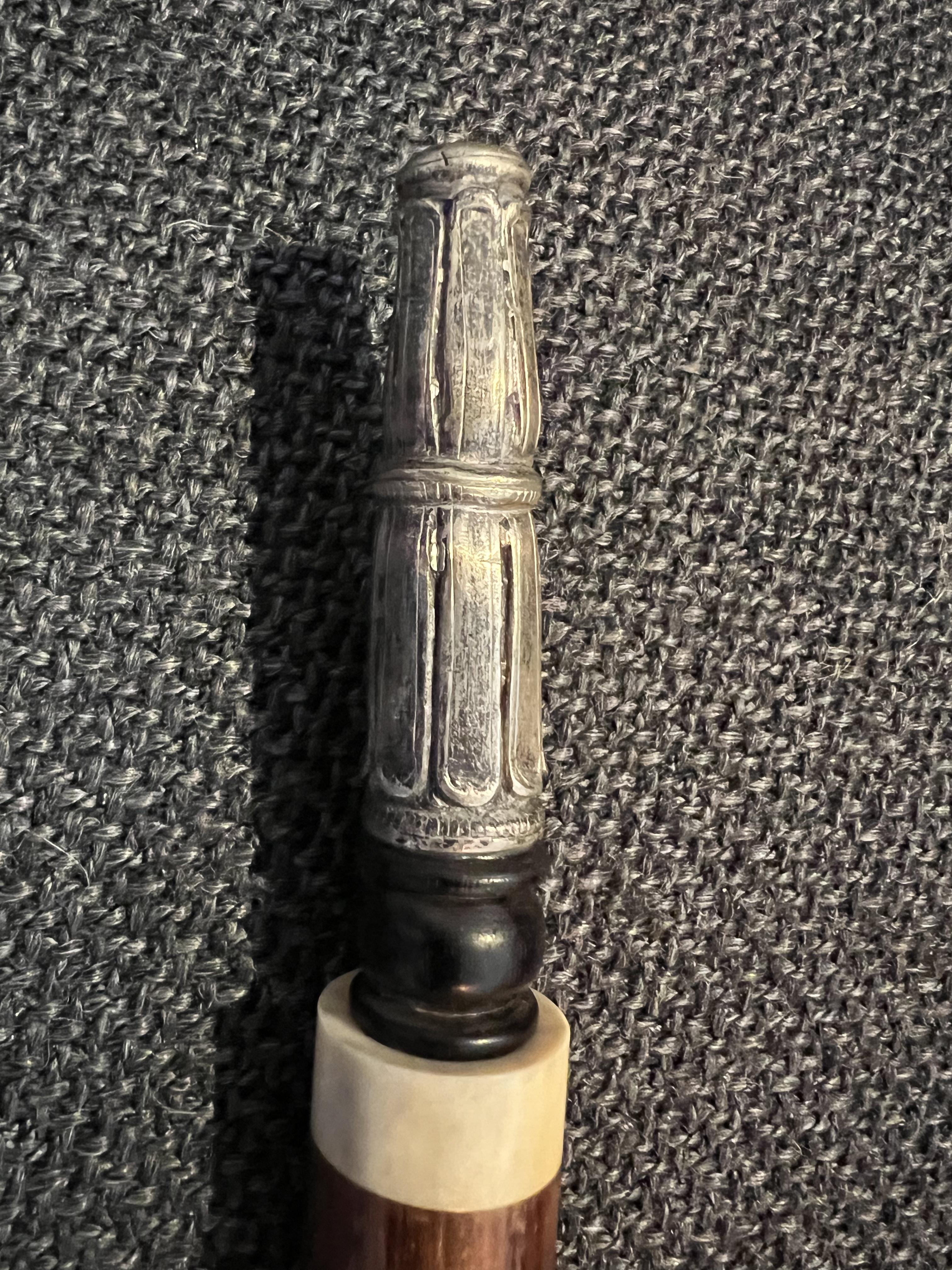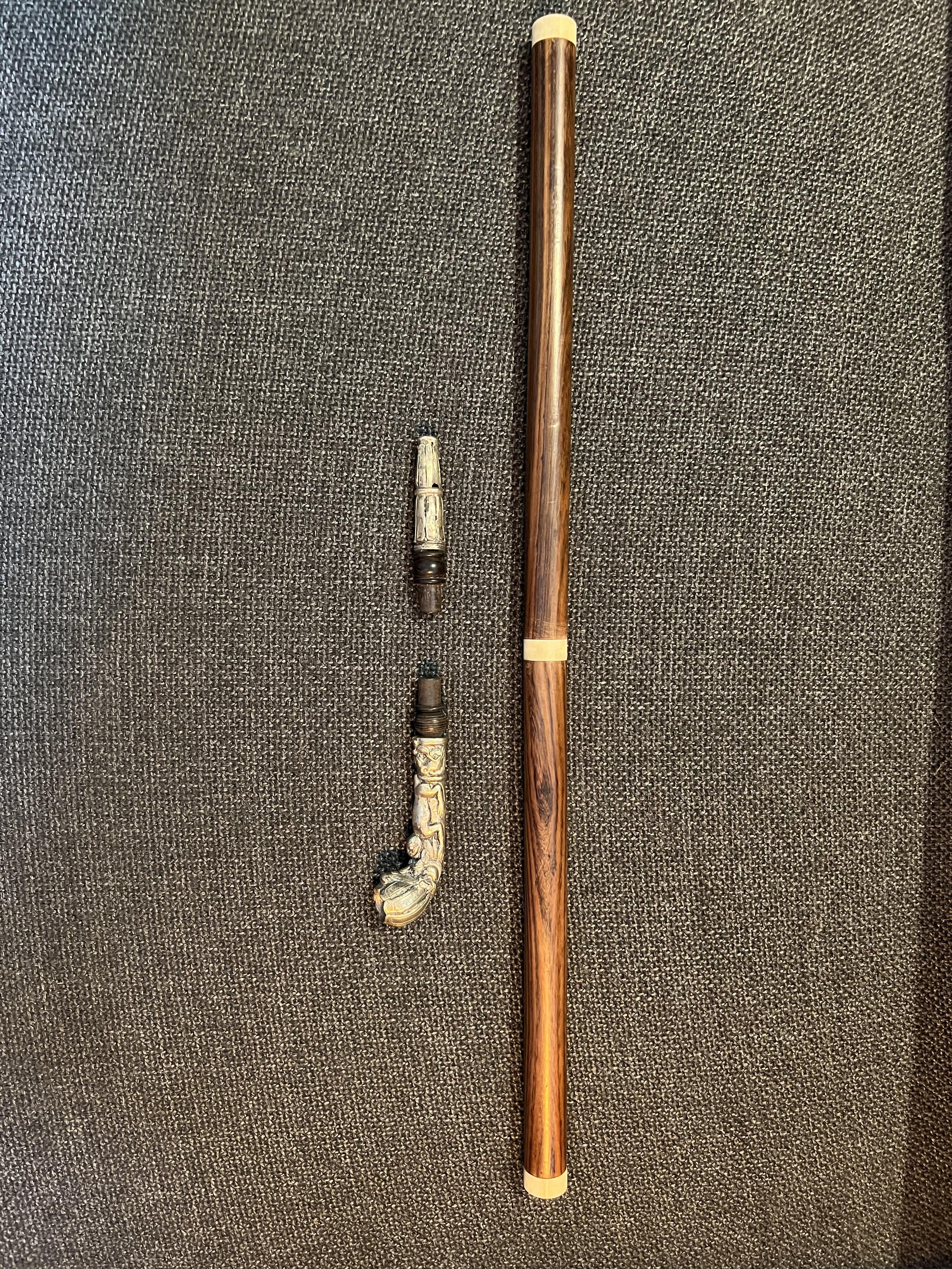 Opium pipe, 73cm long, 310g, wood, ivory and brass (silver plate?)