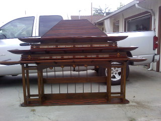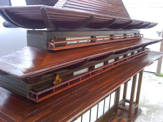 I rented a room from an elderly woman over 20 years ago who had the most beautiful Oriental furnishings I had ever seen. With each item she also had a story . The womans husband was an officer in our military and they traveled all over the orient. This item she had told me she purchased as an antique for 1500.00 I don't remember how old it is or which country she purchased it, the only thing I remember was that it cost three times the amount she paid to bring it to the United States. Since she has passed I have inherited this piece of furniture and have been storing it for the last five years. There are five letters under the bottom level of the roof that I dont know what they say.