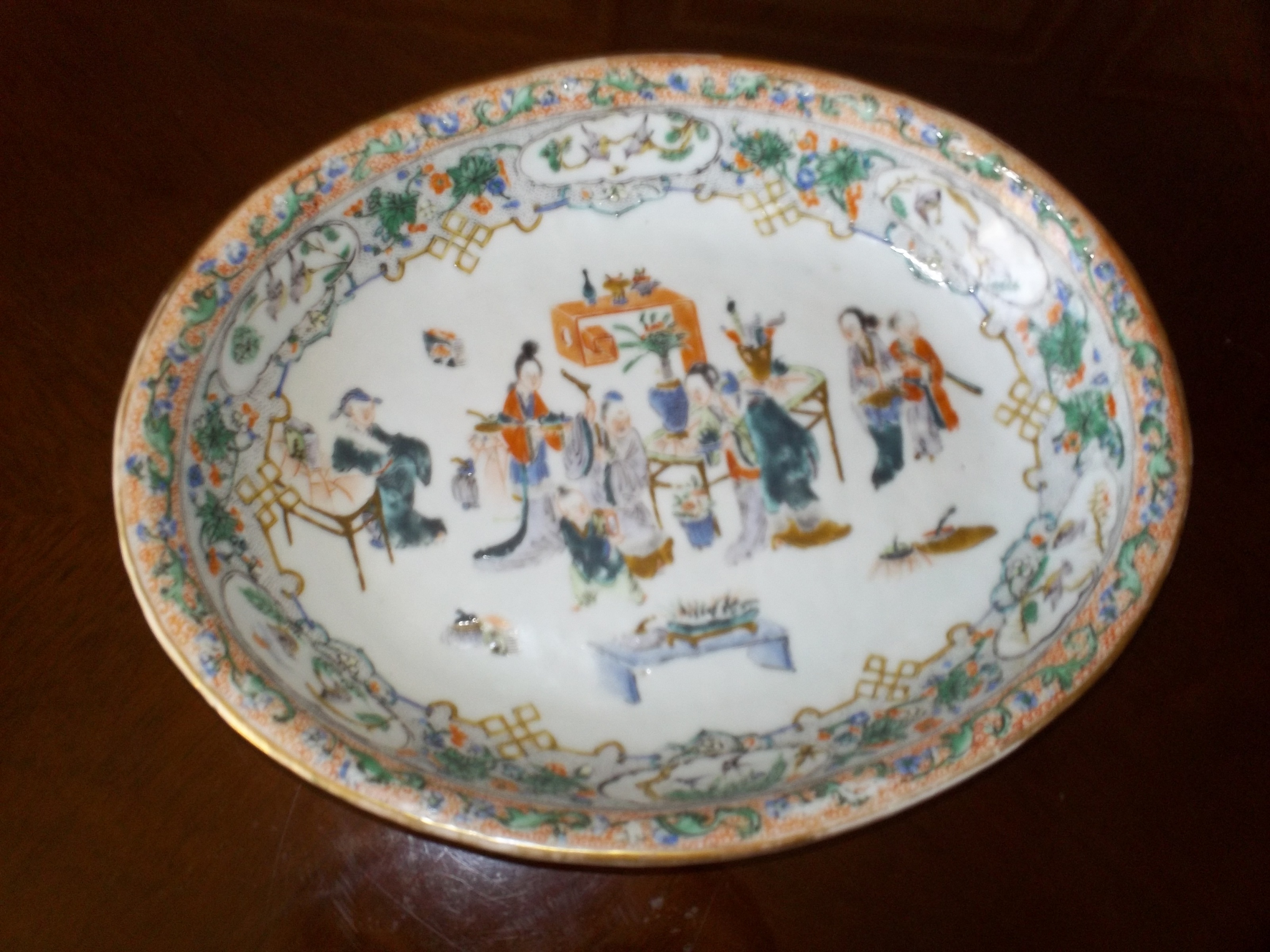 The images on the piece may look to be a result of a bad photo, but because of the wear the images are not very clear. Oval raised sides. Design feels raised. Images appear to be well worn with age. Where it might have repeatedly been held is worn. The bottom is worn as well. There's no maker; name, date...anything. The bottom is rougher and worn on the edges. Since it is our passed relative's we would really like to know info about this piece.