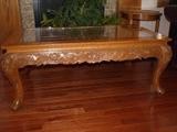 Some furniture from a military Mans estate handcarved furniture includes a bar, china hutch, chest, coffee table, and two end tables +2 carved lamps. Wondering what type of wood this is, what country it is from, and any valuation information.