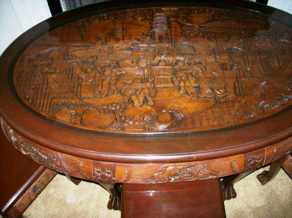 Re: Oriental Hand Carved Oval Coffee Table With 6 Stools